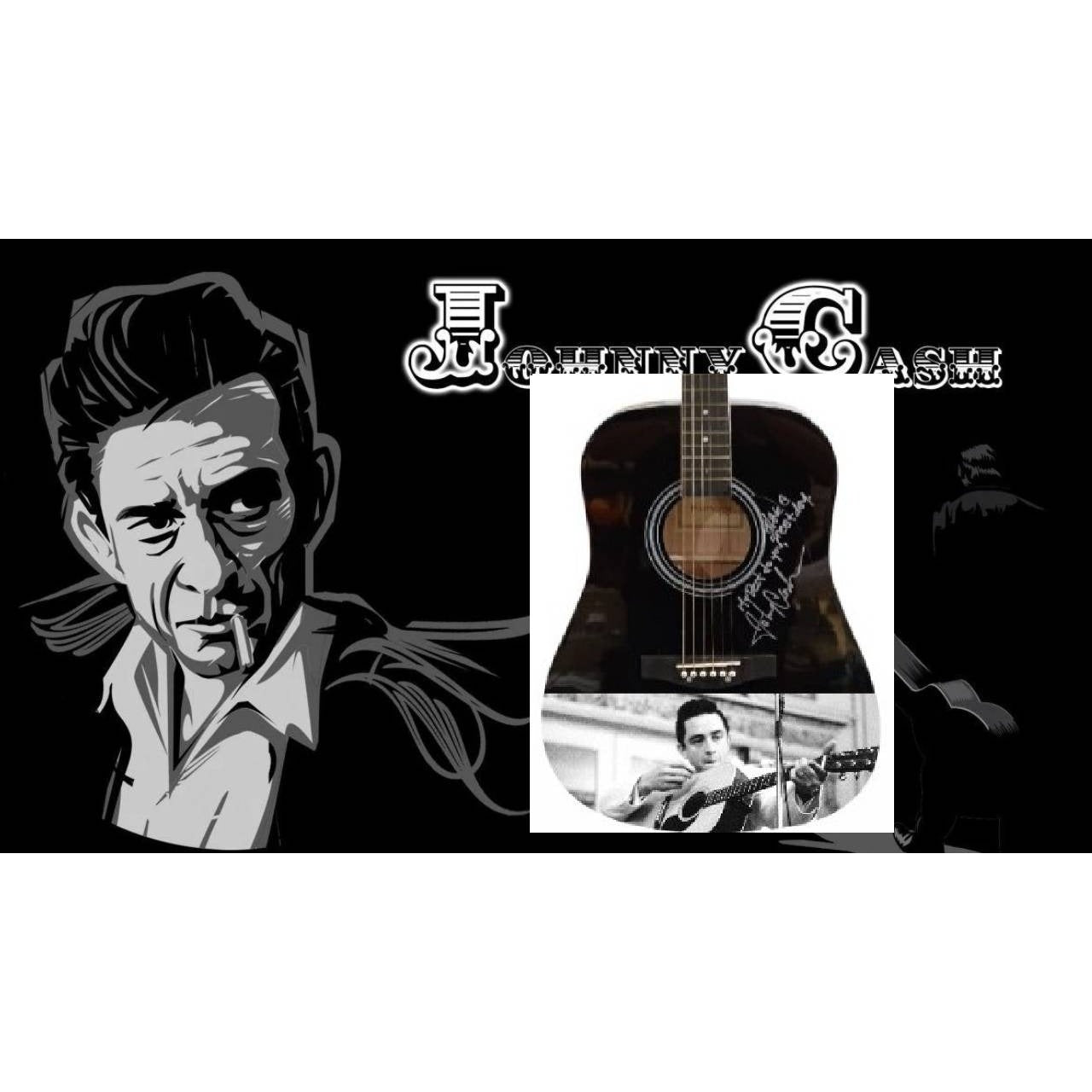 Johnny C@sh "The Man in Black" full size acoustic guitar signed with proof and inscription