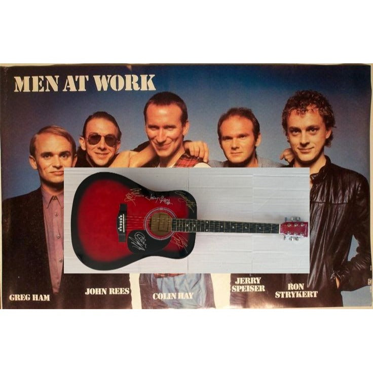 Men At Work, Colin Hay, Ron Strykert, Greg Ham, Jerry Speiser, and, John Rees full size acoustic guitar signed $2995
