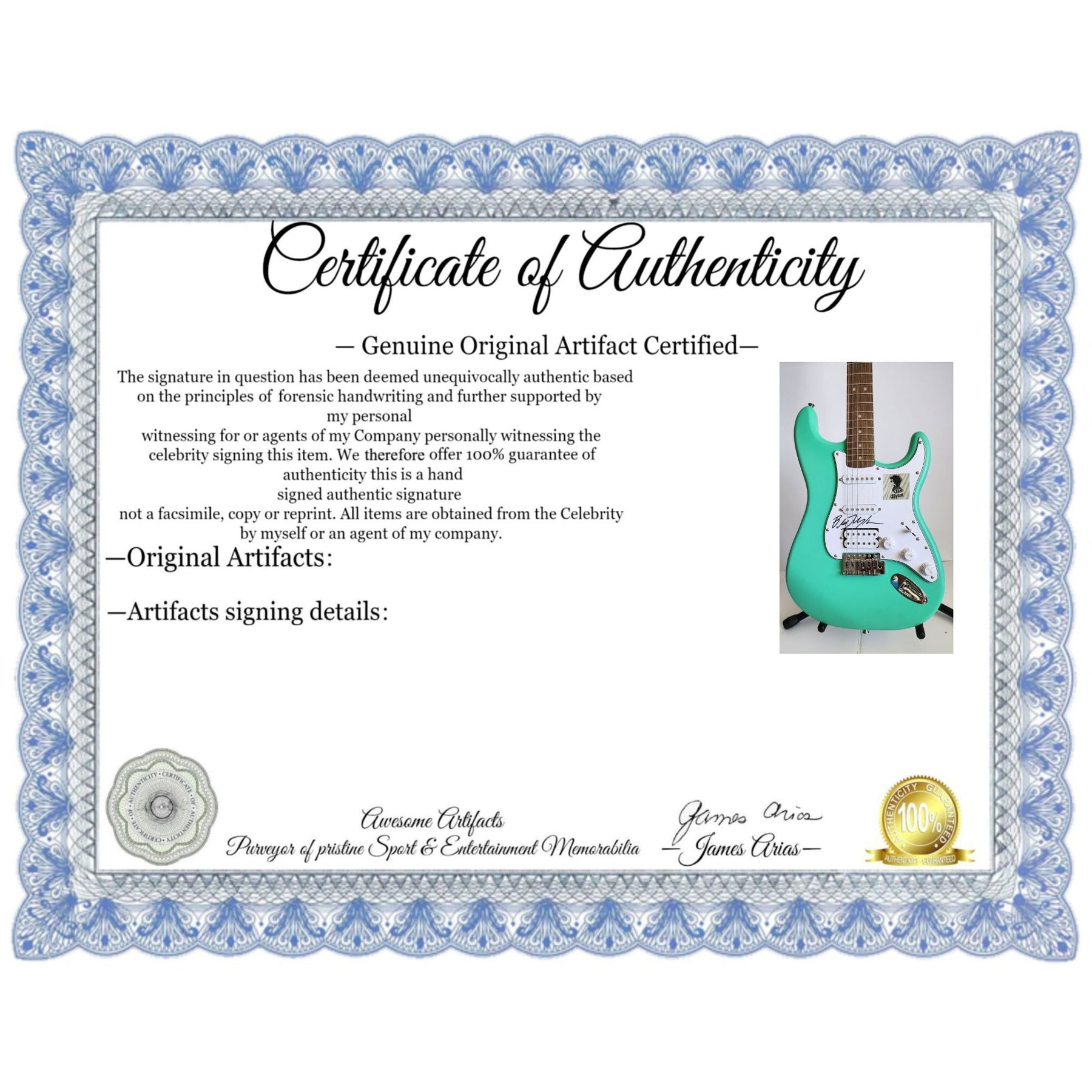 #2 you will receive a certificate of authenticity which will explain the date and location of where I obtained the signatures. Many companies offer an opinion of authenticity I am able to offer 100% guarantee of authenticity as I witness the item being signed personally and I support this claim with signing photos as well as the exact information of where the item was obtained I must say if you take a logical perspective you're getting much more from me than you would get from the so-called authentication companies that give nothing more than an opinion based on no scientific criteria whatsoever by the way