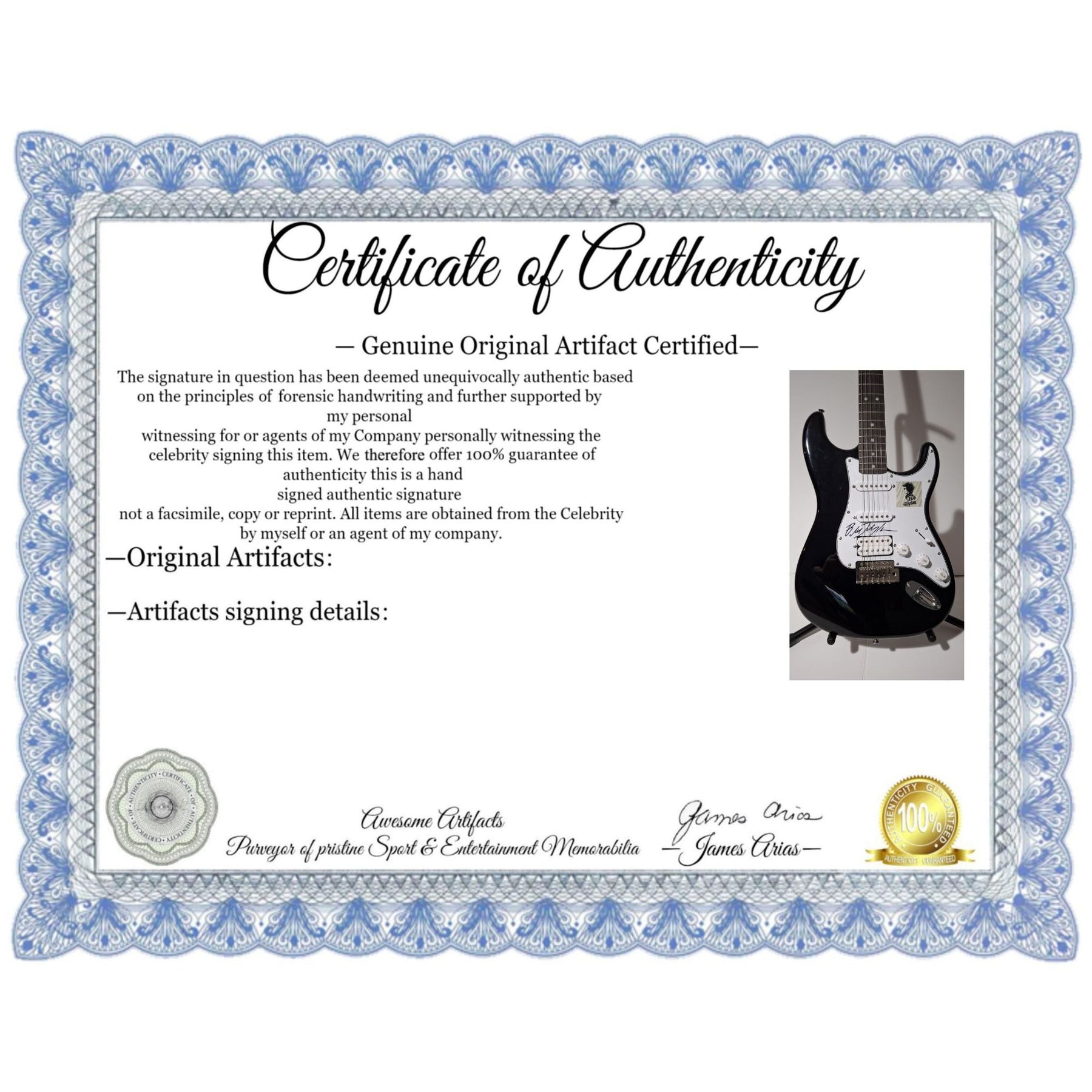 I am including a few cherished framed guitars here from collection and also a couple of my framed guitar pickguards. Originally 40 years ago it was a thrill to get artists to sign guitars however, change is always around the corner and the internet era fell upon us , Princess Diana's death was blamed on Paparazzi chasing her the autograph world also was evolving and in order to be more efficient and get more signatures without problems issues and what I mean by that is being able to attend events be in hotel lobbies and even not offend particular artists who felt as though signing guitars was taboo THE PICKGUARD small and simple but yet large enough to get multiple signatures on became an excellent alternative to getting guitars always signed. You can only carry or keep with you a few guitars where the part of the guitar pickguard which goes on the guitar you can keep 100s of those in a backpack!!