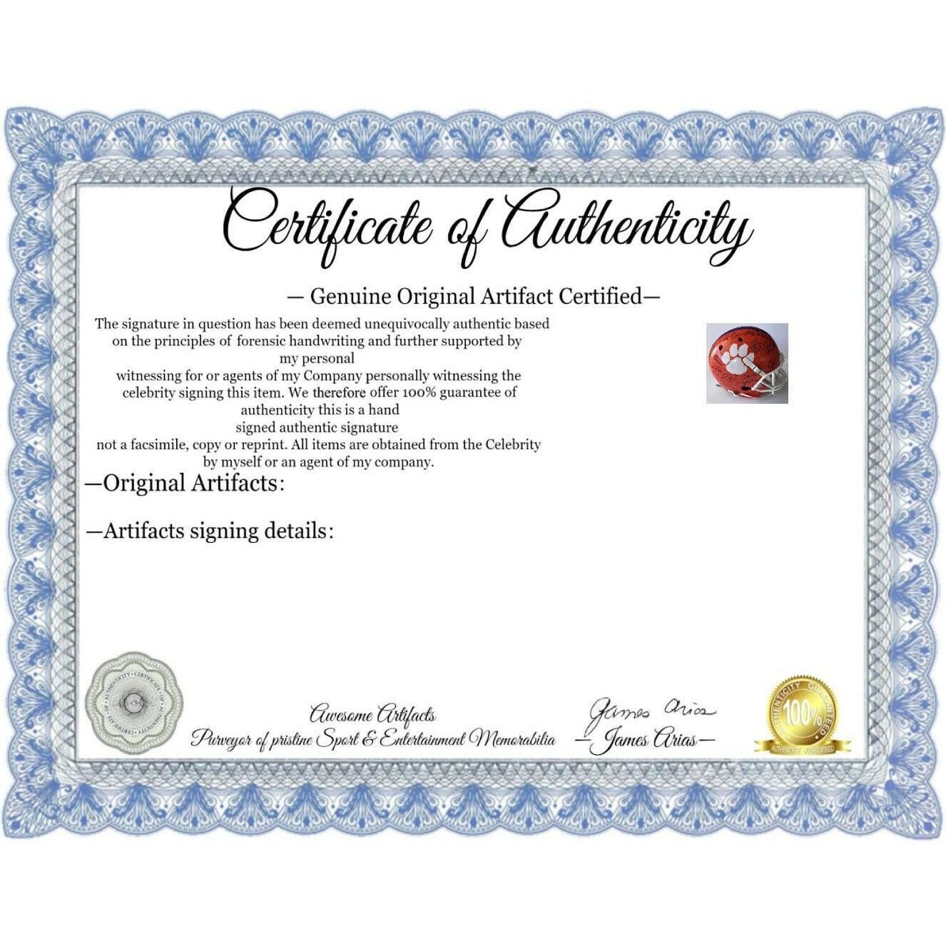 and with your certificate I will provide specific details date and location of where I obtained the signature(s). The nice thing here is I do not offer an opinion of authenticity rather you receive a guarantee of authenticity which I am able to offer as I have witnessed the items which I am offering actually being signed by the sports figure or celebrity.