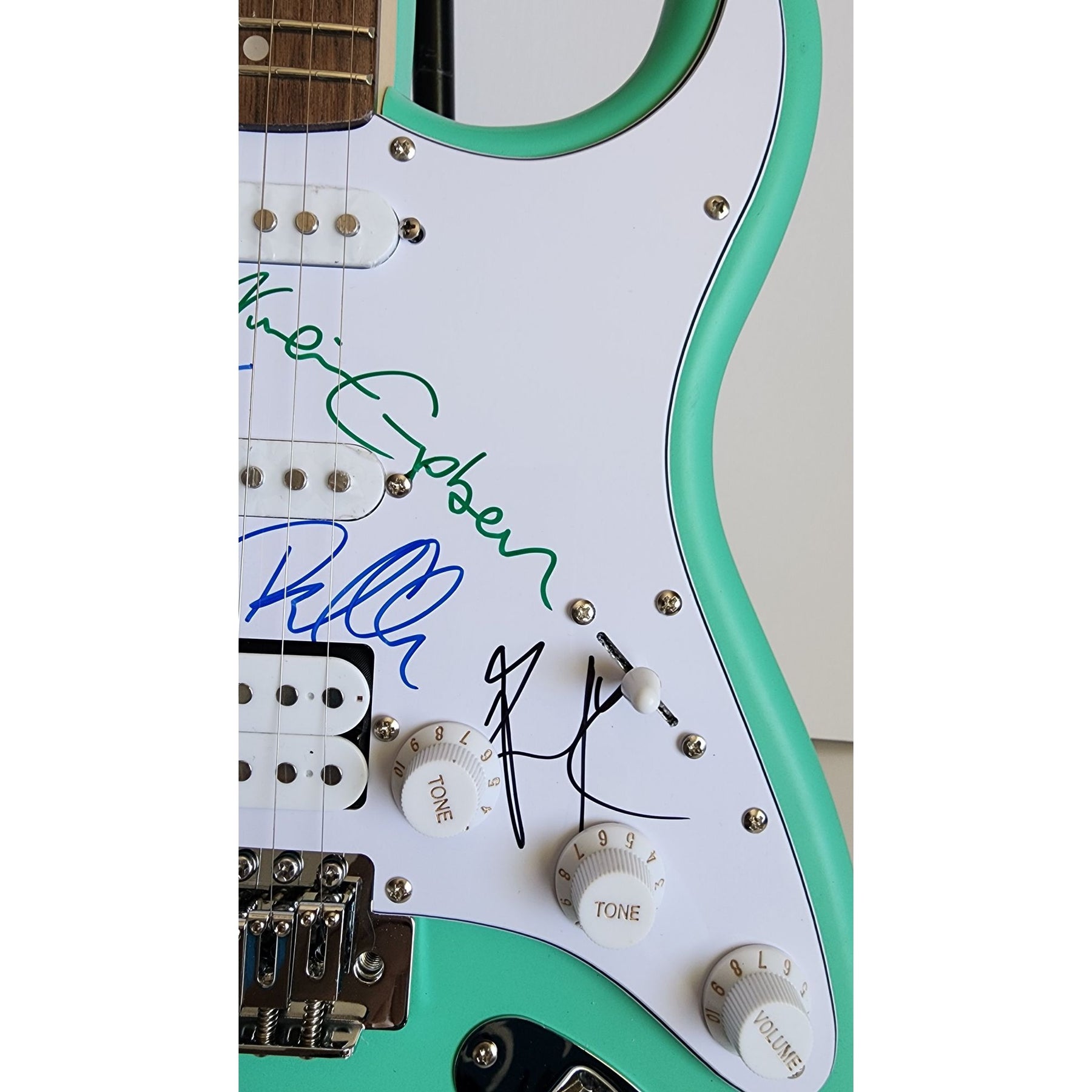 I got this guitar signed by the band proceeding their July 6th 2014 concert date at the Sleep Train Amphitheater in Chula Vista California as they were arriving early July 7th to the Sunset Marquis Hotel in Hollywood California they were performing July 8th at The Forum in Inglewood California and I got the rest of the band to sign the guitar on July 8th, 2014 prior to their concert as they were leaving for the Forum.