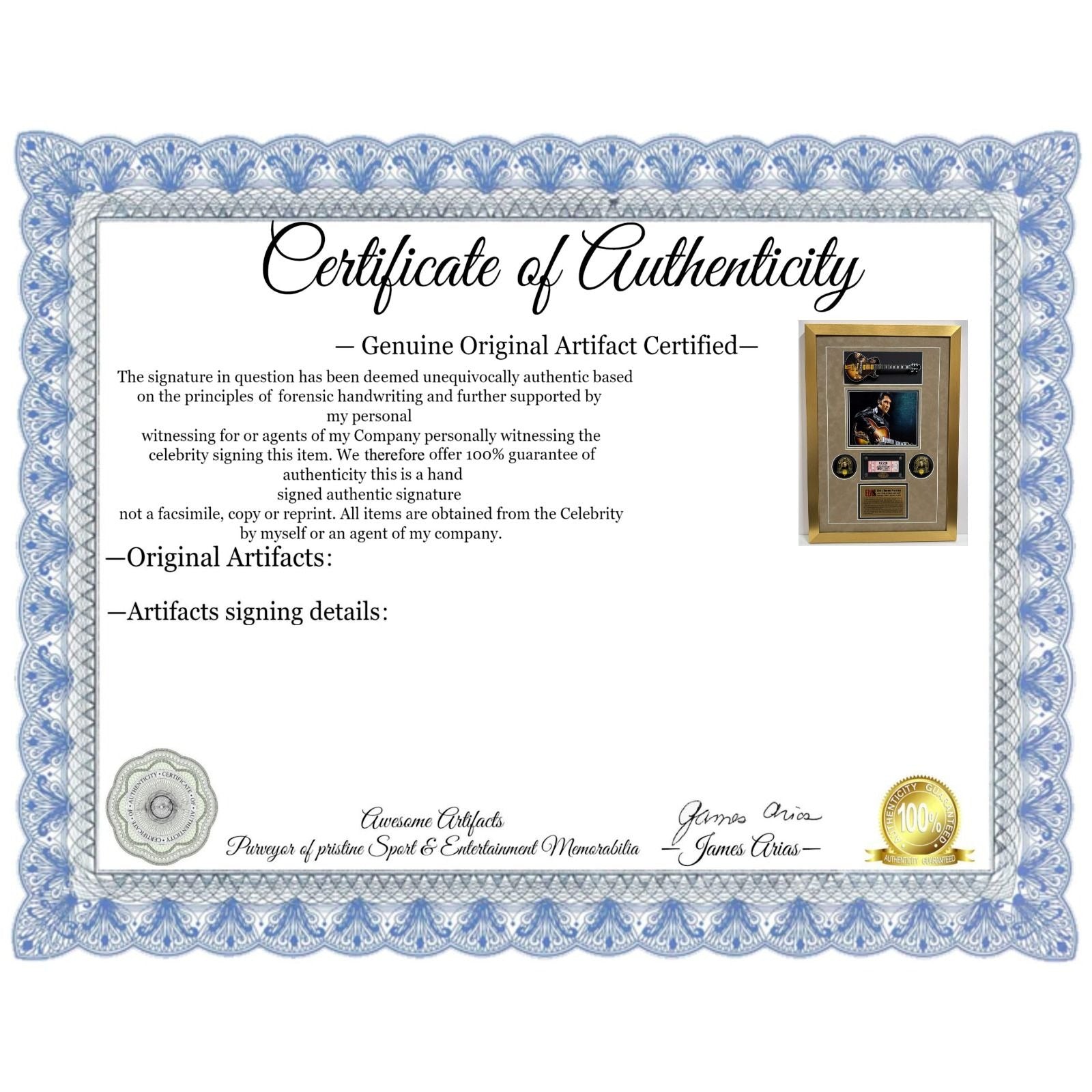 #3 All items which I sell come with a Certificate of Authenticity and with your certificate I will provide specific details, the date and location of where I obtained the signature(s). The nice thing here is I do not offer an opinion of authenticity rather you receive a guarantee of authenticity which I am able to offer as I have witnessed the items which I am offering actually being signed by the sports figure or celebrity.