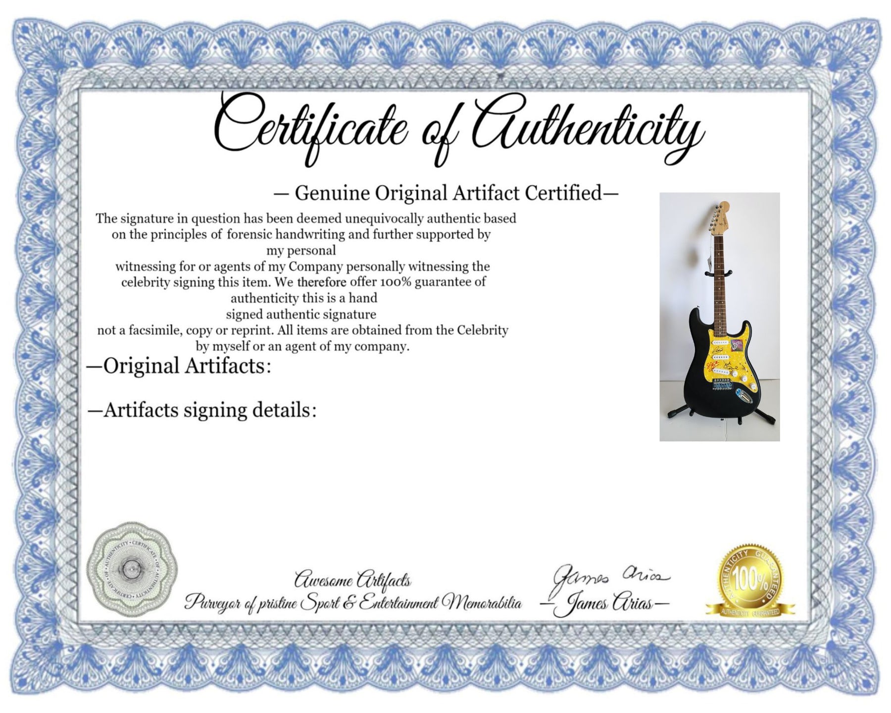 #2 you will receive a certificate of authenticity which will explain the date and location of where I obtained the signatures. Many companies offer an opinion of authenticity I am able to offer 100% guarantee of authenticity as I witness the item being signed personally and I support this claim with signing photos as well as the exact information of where the item was obtained I must say if you take a logical perspective you're getting much more from me than you would get from the so-called authentication companies that give nothing more than an opinion based on no scientific criteria whatsoever by the way
