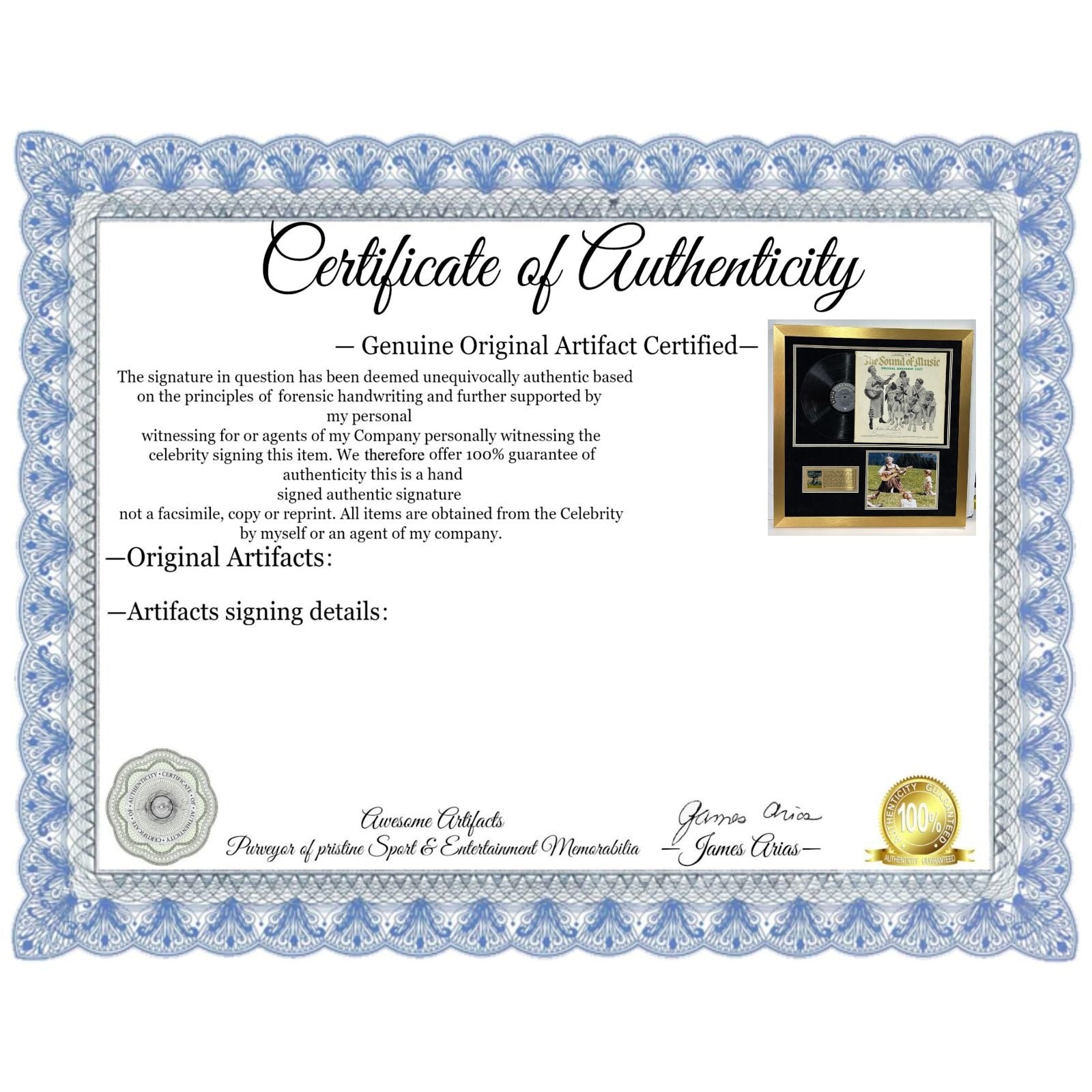 Julie Andrews, "The Sound of Music", original, LP, signed with proof & museum quality frame 26x27 $1699