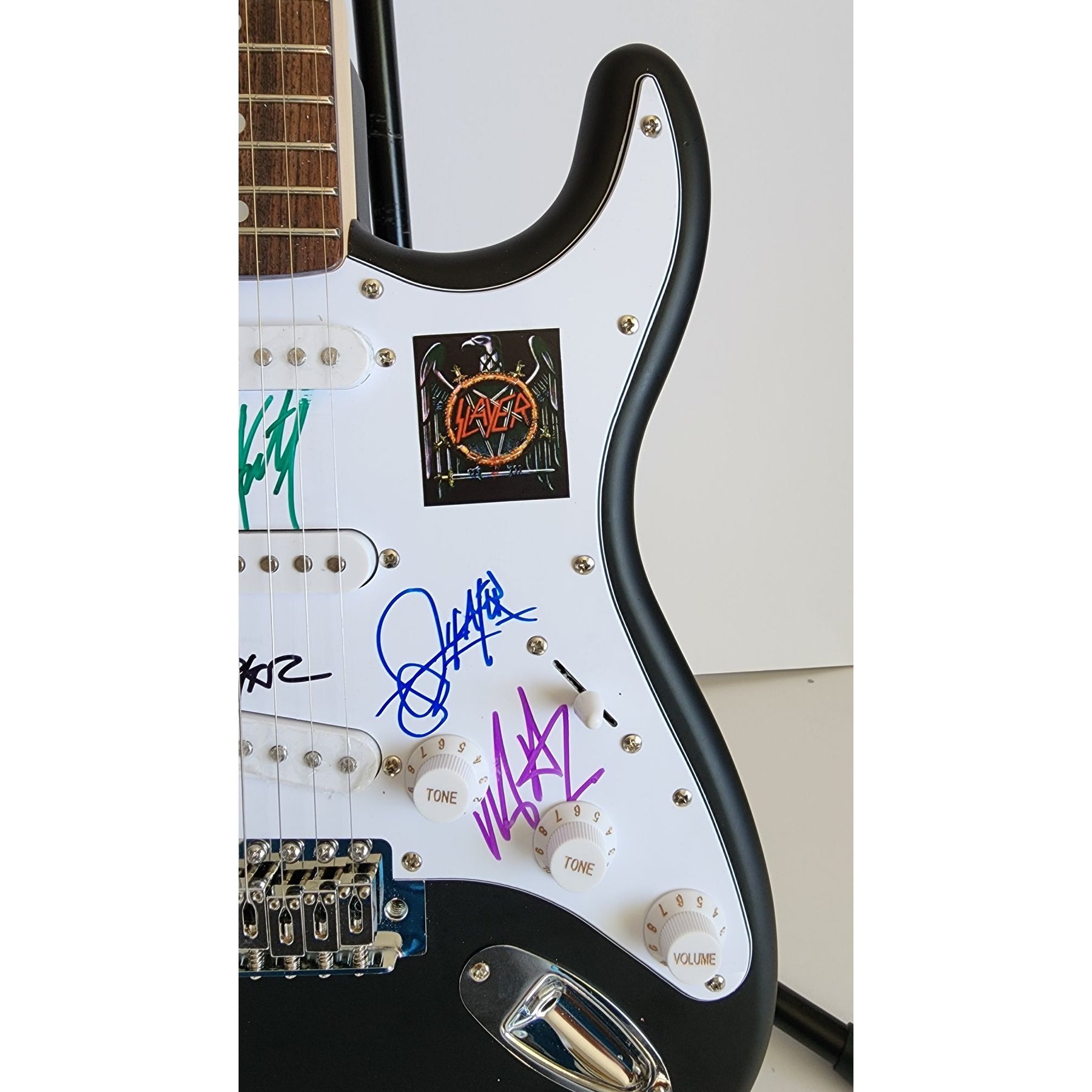 Kerry King, Tom Araya, Paul Bostaph, Gary Holt, Slayer, authentic Fender Stratocaster electric guitar signed with proof $2995