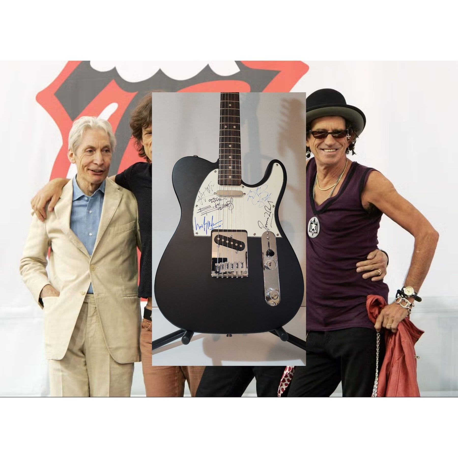 Rolling Stones Mick Jagger , Keith Richards, Bill Wyman, Charlie Watts & Ronnie Wood authentic Fender telecaster full size electric guitar signed with proof $5,995