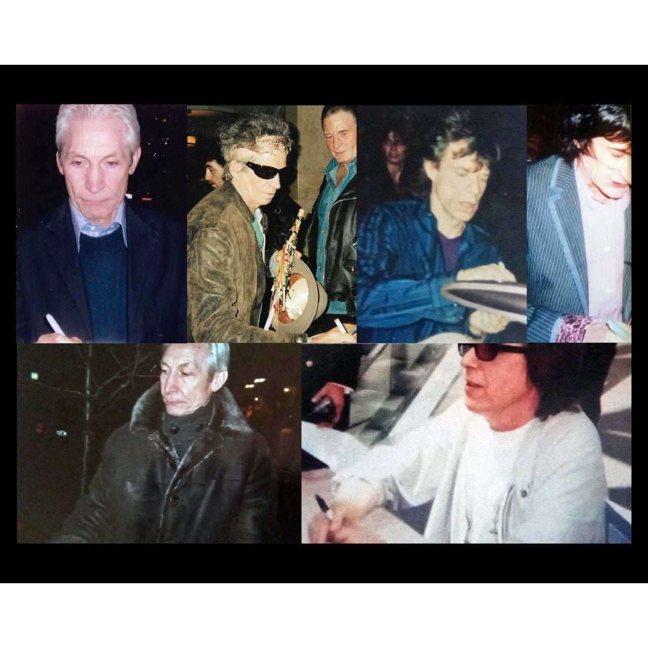 Mick Jagger, Mick Taylor, Charlie Watts, Ronnie Wood and Keith Richards signed May 27th, 2015, outside of the Belly-Up nightclub in Solana Beach California where the Rolling Stones were performing at a private show.