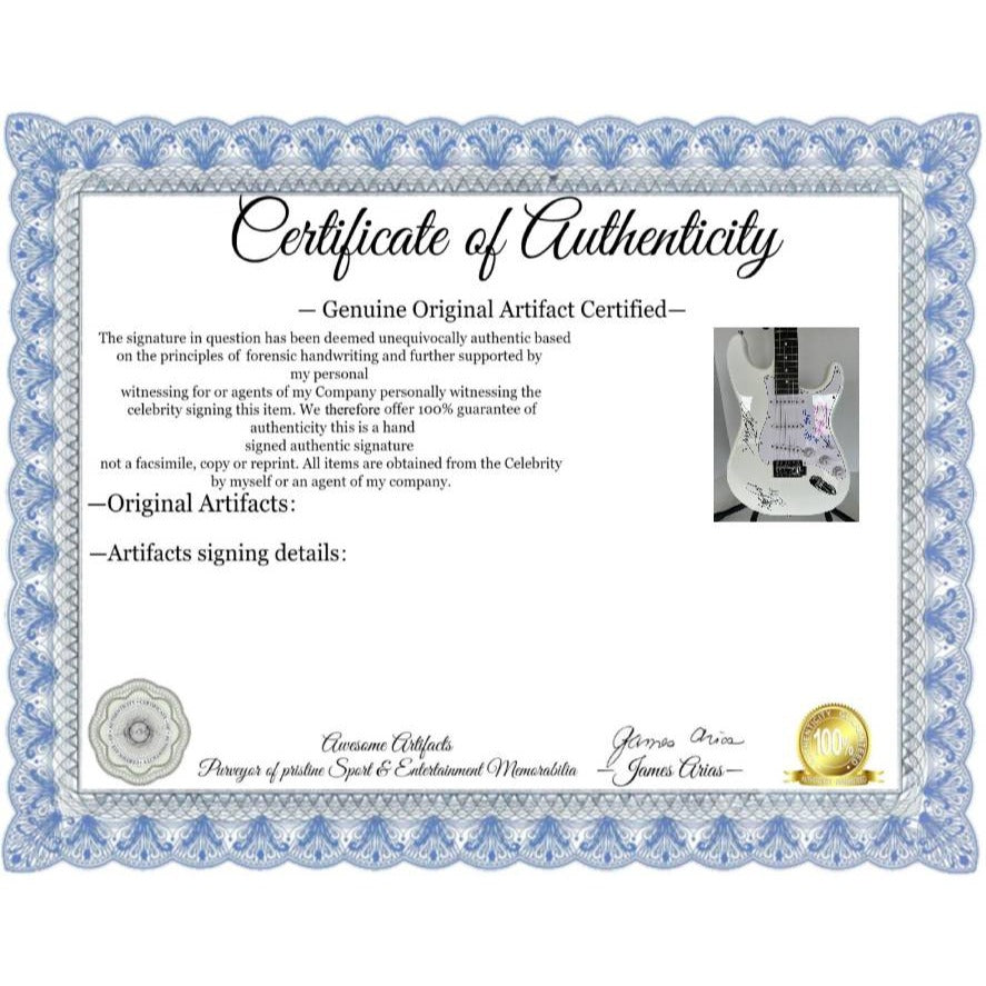 ZZ TOP Billy Gibbons, Dusty Hill, Frank Beard stratocaster electric guitar signed with proof
