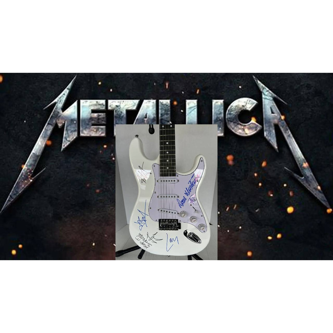 Metallica James Hetfield Kirk Hammett Jason Newsted Dave Mustaine Lars Ulrich startocaster electric guitar signed with proof