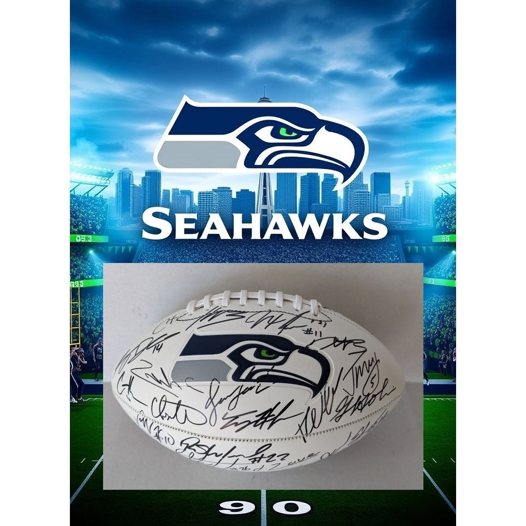 Seattle Seahawks full size logo football 2025 team signed with 40 plus signatures