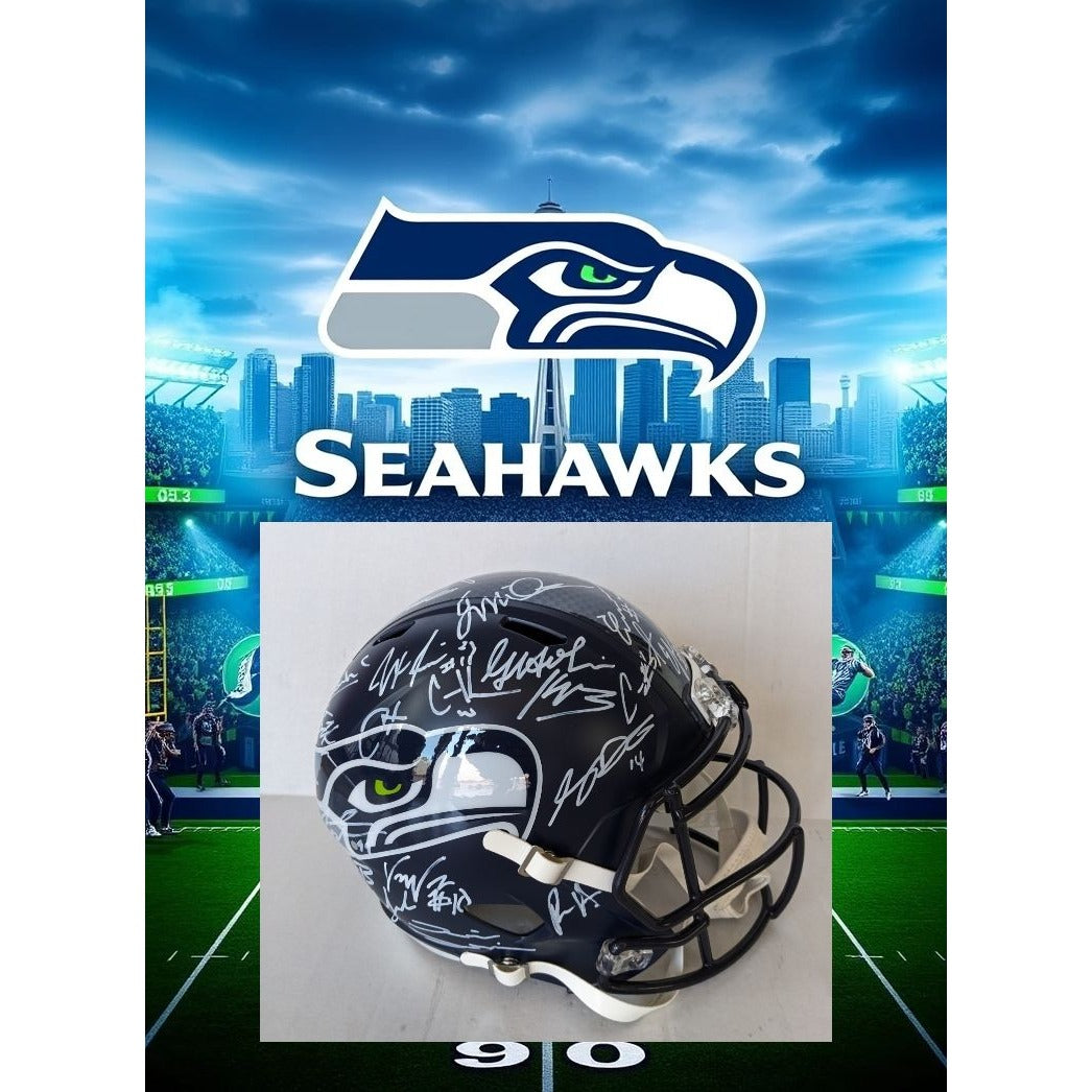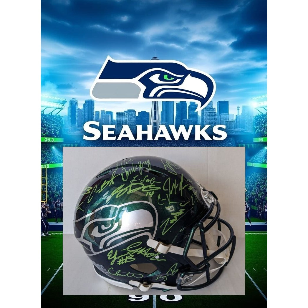 Seattle Seahawks Speed Replica Full Size helmet 2025 team signed with 40 plus signatures