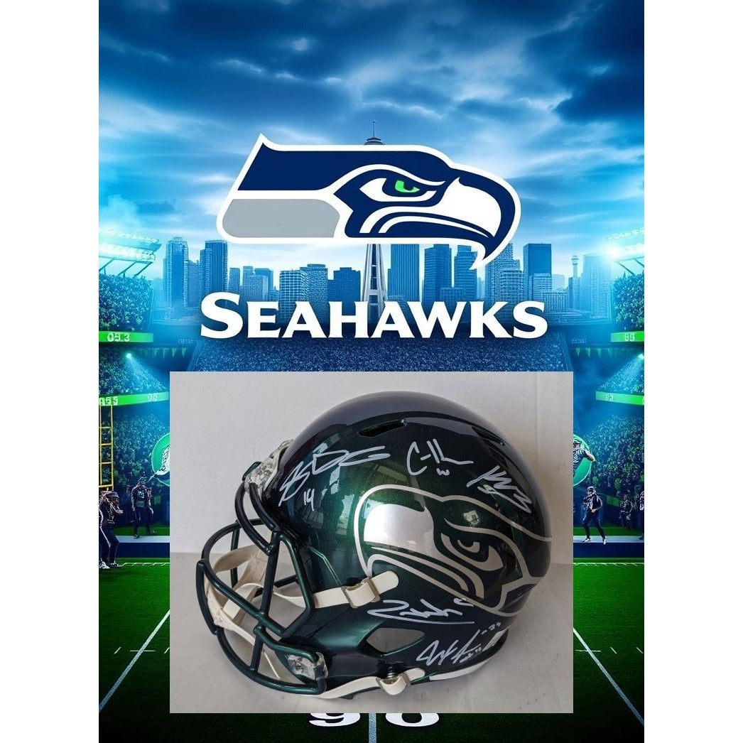 Seattle Seahawks Speed Replica full size emerald helmet with Sam Darnold Jaxon -Smith Njigba, Kenneth Walker, Zach Charbonnet, Cooper Kupp