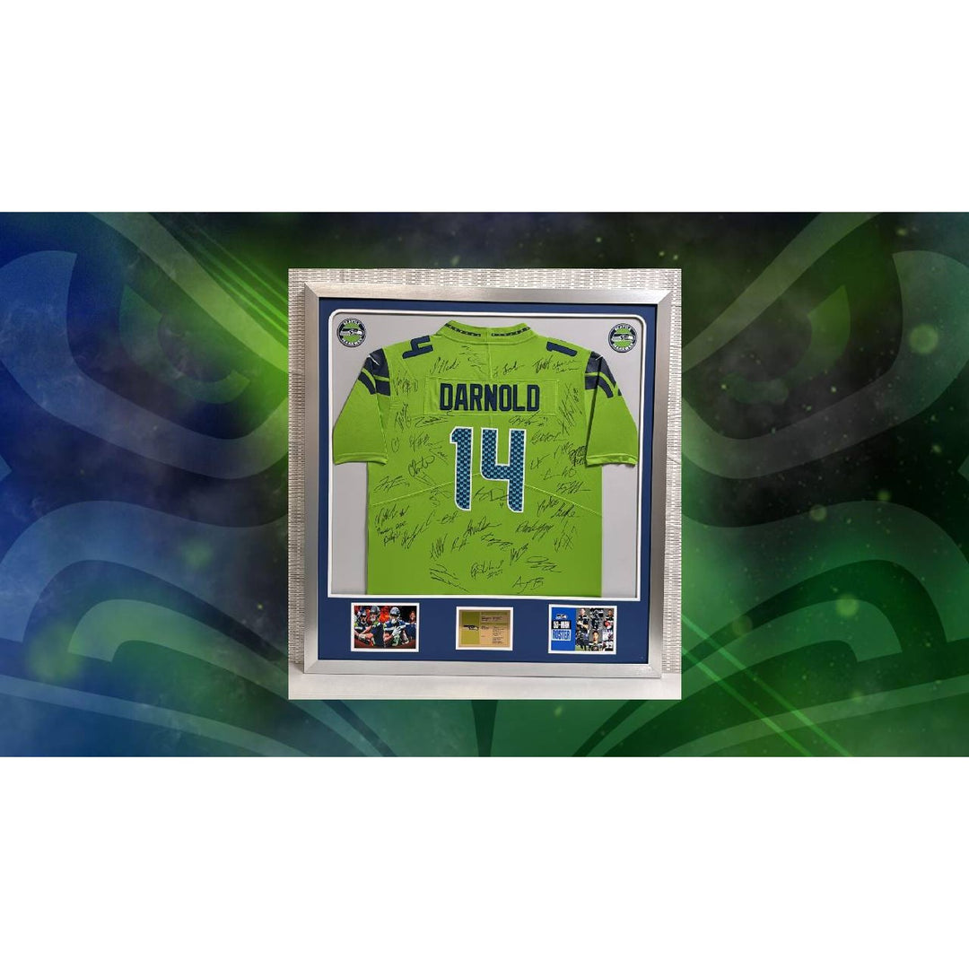 Sam Darnold Seattle Seahawks green size xl 2025 team signed jersey 40 plus signatures and a museum quality frame 35x45 plexi with proof