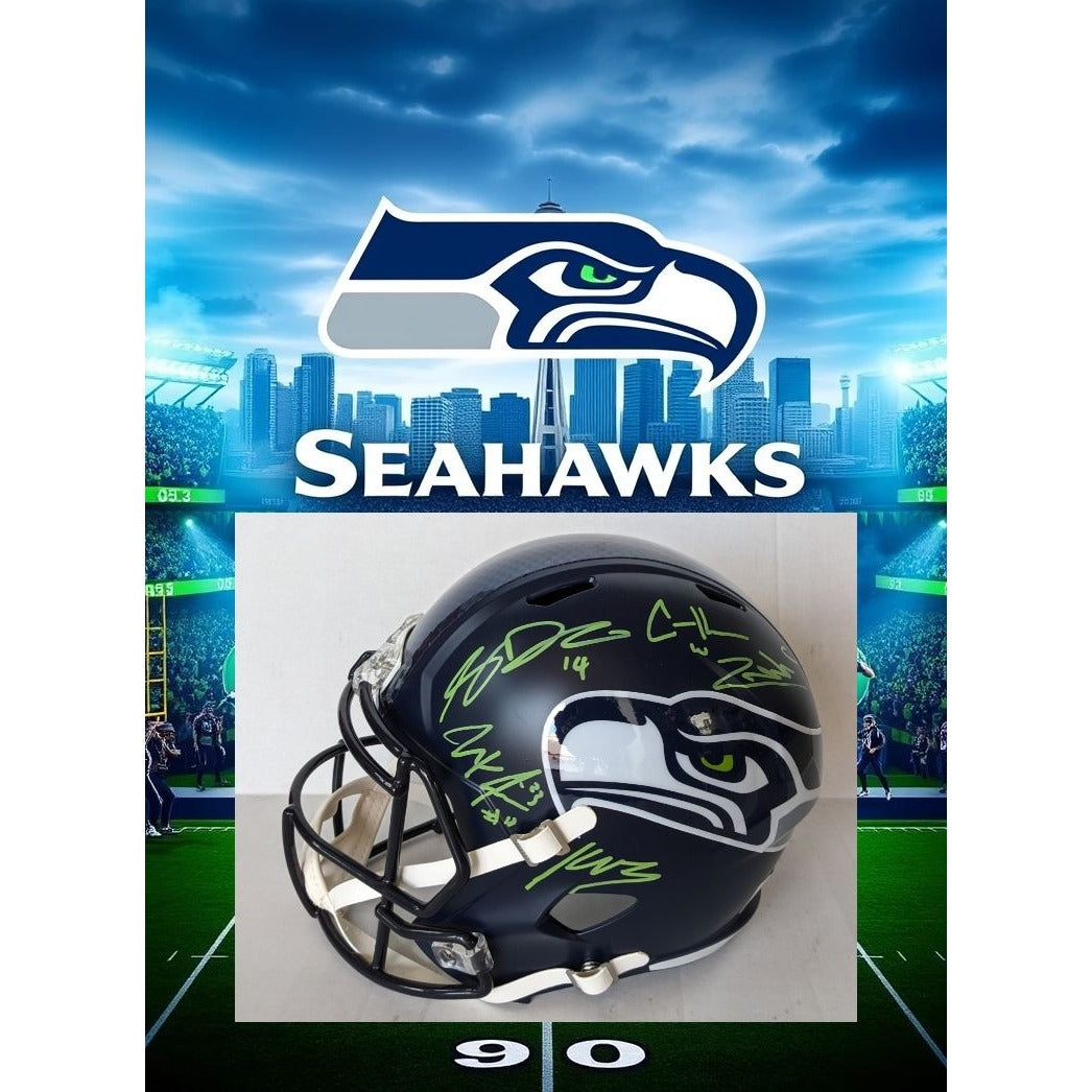 Seattle Seahawks Speed Replica full size emerald helmet with Sam Darnold Jaxon -Smith Njigba, Kenneth Walker, Zach Charbonnet, Cooper Kupp