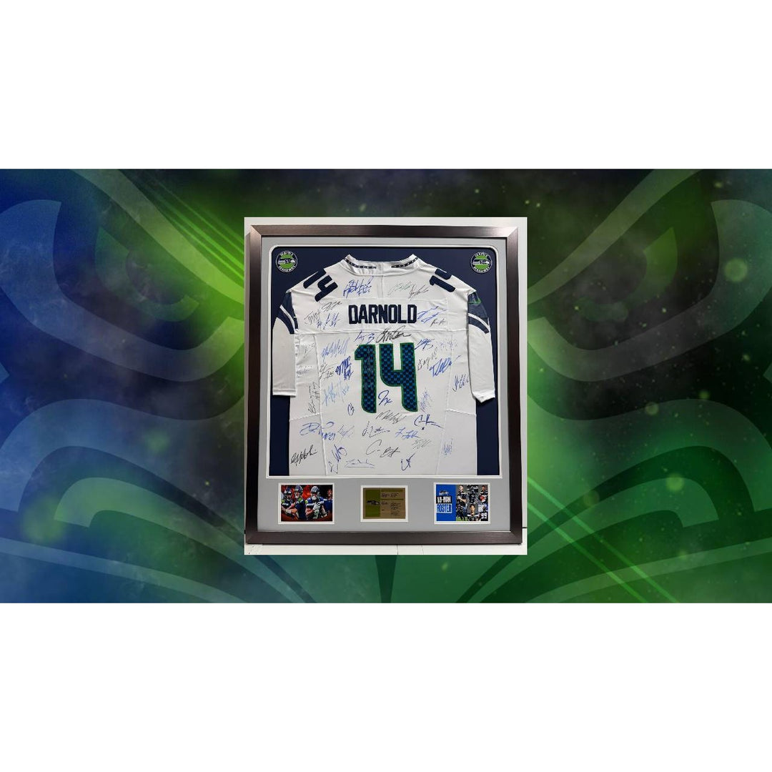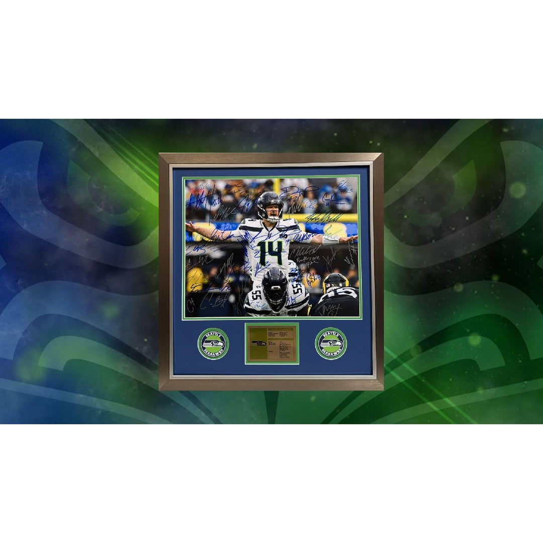 Sam Darnold Seattle Seahawks 16x20 photo 2025 team signed with 40 plus signatures and a museum quality frame 26x27 plexi with proof
