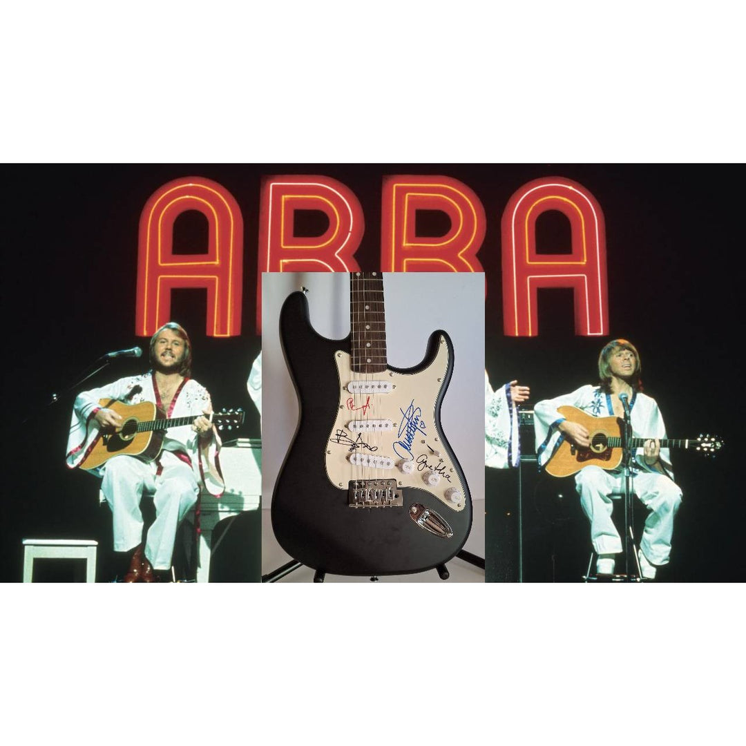 ABBA Anni-Frid Lyngstad Benny Anderson Bjorn Ulvaeus Agnetha Fältskog Zenni Fender Stratocaster electric guitar signed with proof