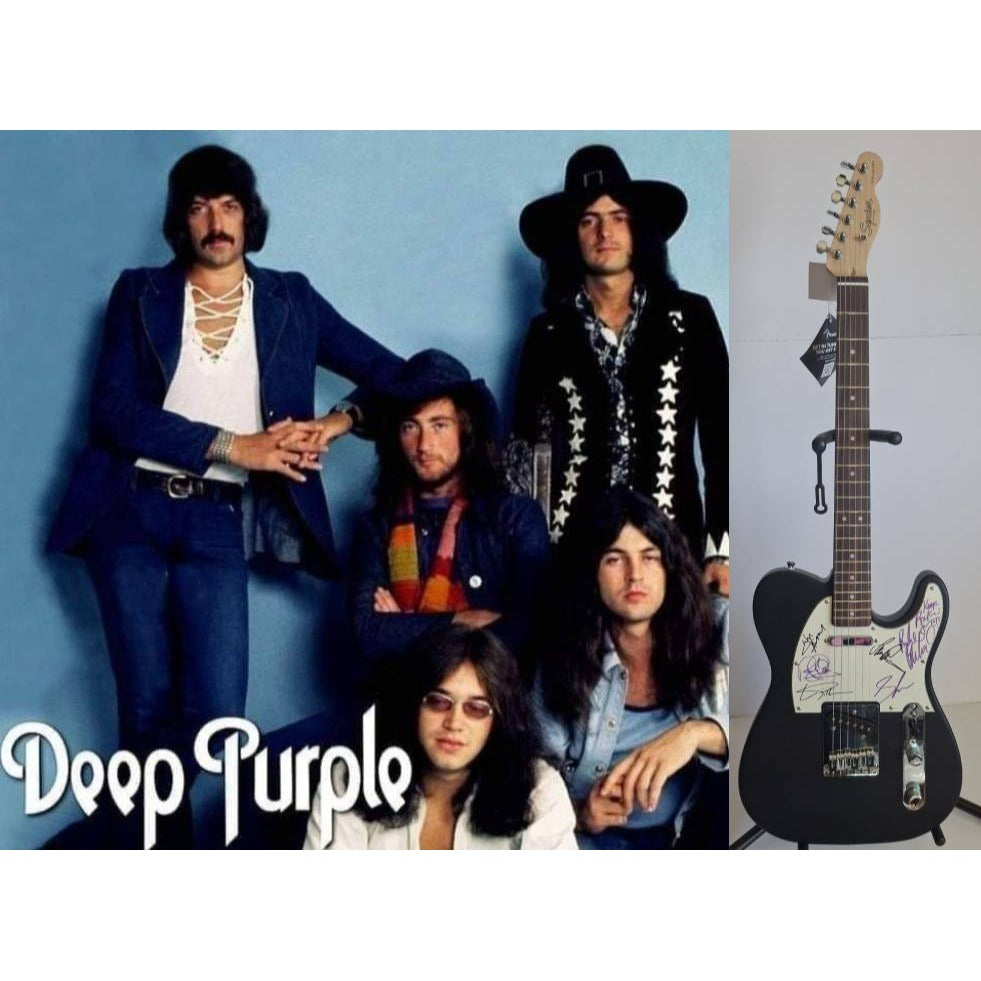 Deep Purple Ian Gillen , Richie Blackmore , Jon Lord , Ian Paice and Roger Glover Fender telecaster electric guitar signed with proof
