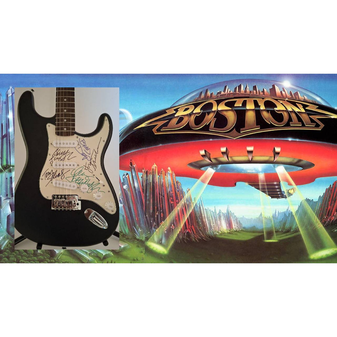 Boston Tom Scholz, Brad Delp, Barry Goudreau, Fran Sheehan, and Sib Hashian Fender Stratocaster signed with proof