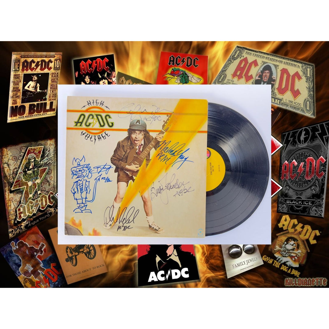 AC/DC "High Voltage" Angus and Malcolm Young, Brian Johnston, Phil Rudd, & Cliff Williams original LP signed with proof