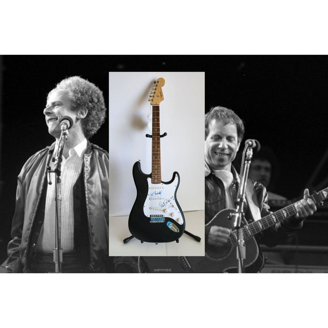 Garfunkel & Paul Simon, authentic Fender Stratocaster electric guitar signed with proof