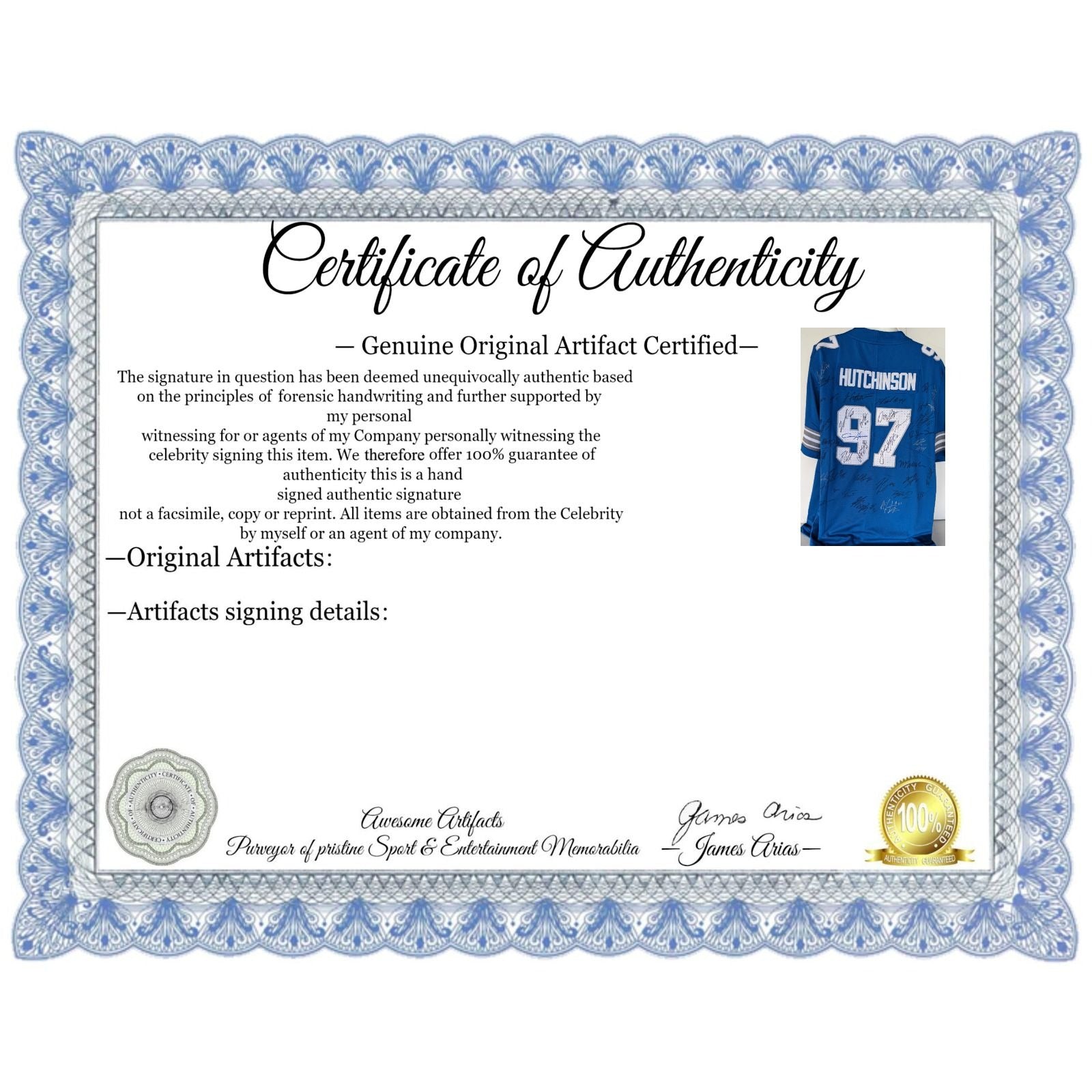 #2 you will receive a certificate of authenticity which will explain the date and location of where I obtained the signatures. Many companies offer an opinion of authenticity I am able to offer 100% guarantee of authenticity as I witness the item being signed personally and I support this claim with signing photos as well as the exact information of where the item was obtained I must say if you take a logical perspective you're getting much more from me than you would get from the so-called authentication companies that give nothing more than an opinion based on no scientific criteria whatsoever by the way