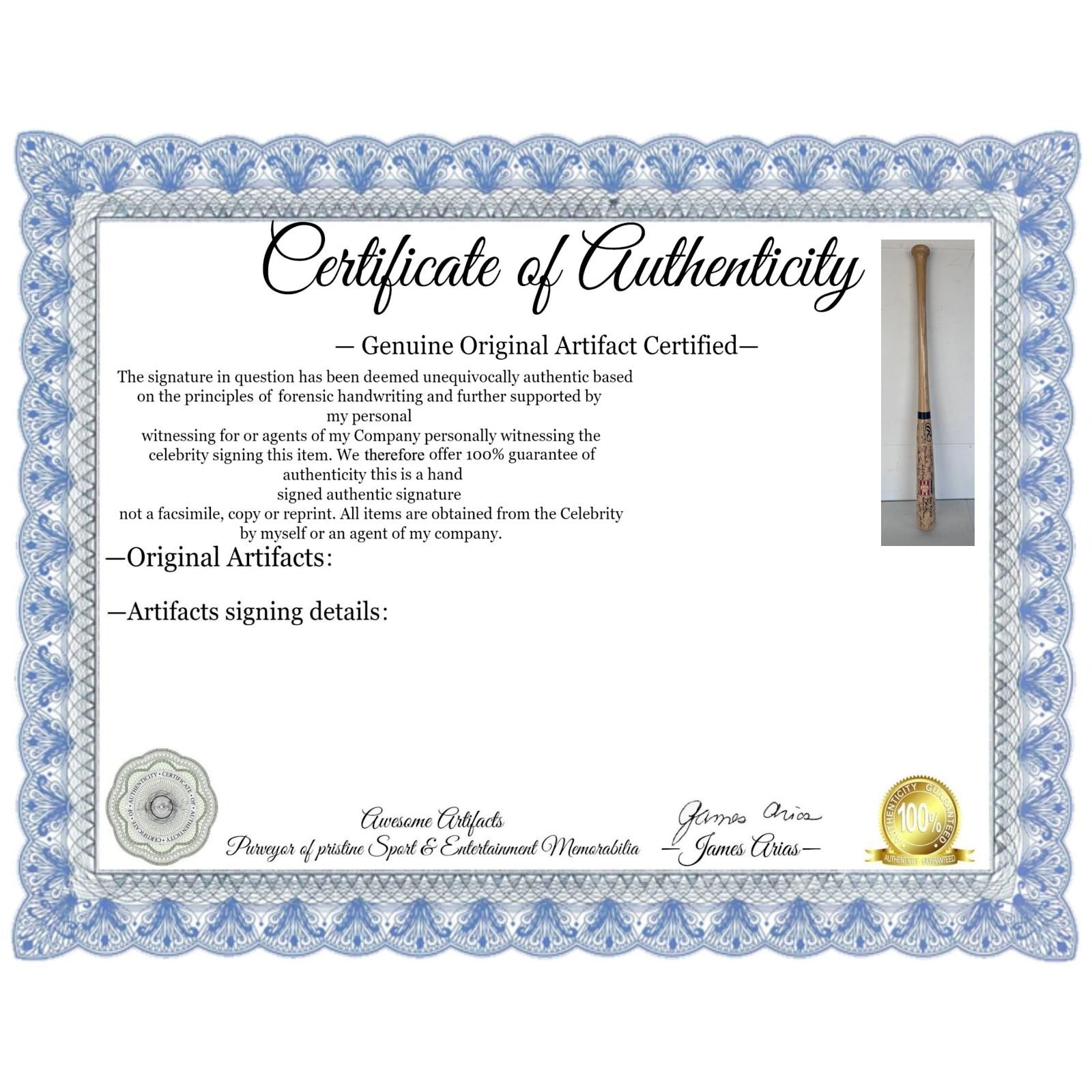 #3 All items which I sell come with a Certificate of Authenticity and with your certificate I will provide specific details, the date and location of where I obtained the signature(s). The nice thing here is I do not offer an opinion of authenticity rather you receive a guarantee of authenticity which I am able to offer as I have witnessed the items which I am offering actually being signed by the sports figure or celebrity.