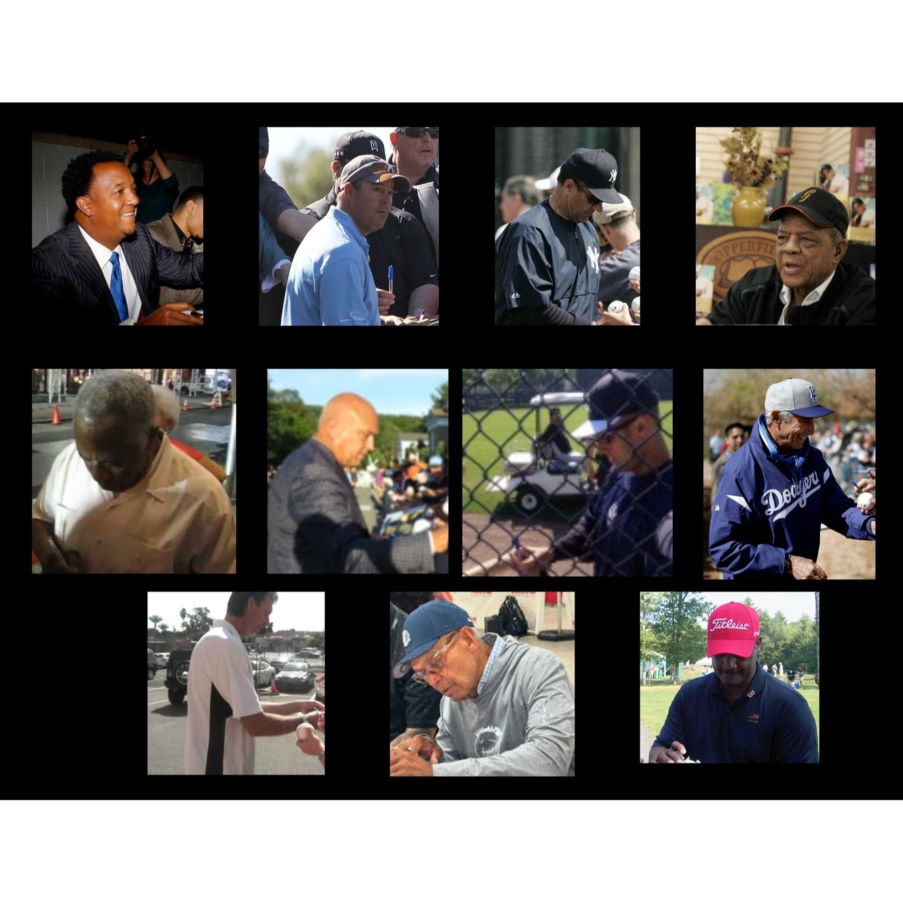 Additional signatures include Ozzie Smith, Joe Torre, Billy Williams, Pedro Martinez, George Brett, Rod Carew, Randy Johnson , Whitey Ford, Cal Ripken Jr. , Tom Glavine , Frank Thomas ,Tony Perez , Yogi Berra, Fergusen Jenkins, Nolan Ryan, Paul Molitor , Vin Scully, Reggie Jackson, Greg Maddux, Jim Rice, Ernie Banks, Steve Carlton, Juan Marichal , Bruce Sutter., Jim Palmer, Willie Mays, Robin Yount., Bobby Cox, Tom Seaver