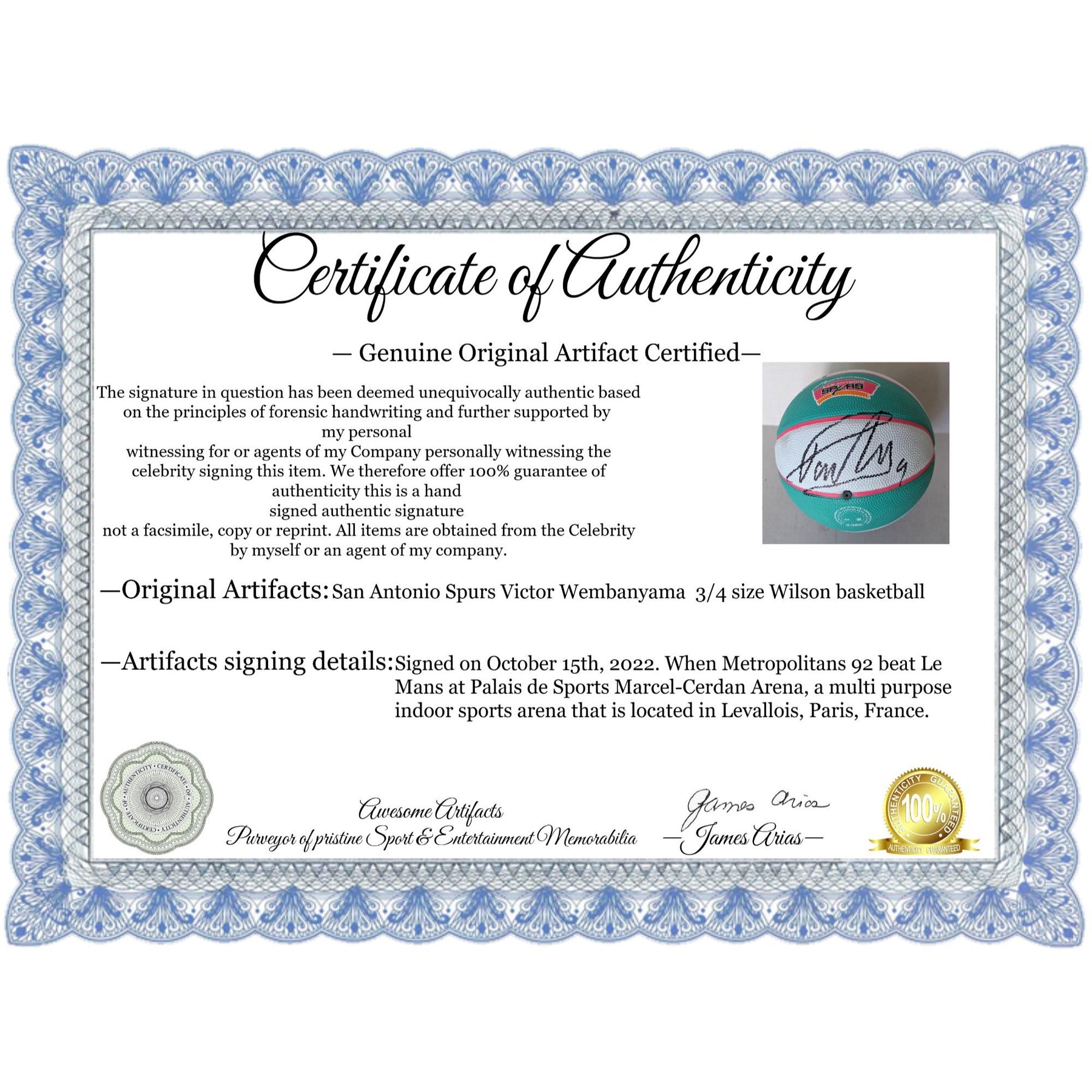 San Antonio Spurs Victor Wembanyama 3/4 size Wilson basketball signed with proof $495