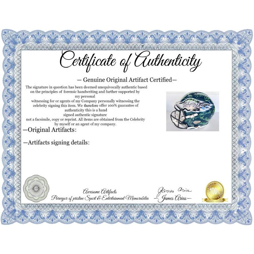 #2 you will receive a certificate of authenticity which will explain the date and location of where I obtained the signatures. Many companies offer an opinion of authenticity I am able to offer 100% guarantee of authenticity as I witness the item being signed personally and I support this claim with signing photos as well as the exact information of where the item was obtained I must say if you take a logical perspective you're getting much more from me than you would get from the so-called authentication companies that give nothing more than an opinion based on no scientific criteria whatsoever by the way