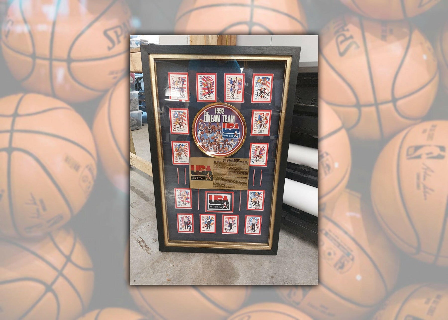 What makes this piece special is that it includes Head Coach Chuck Daly and the rest of the coaching staff Coach K, Lenny Wilkens, and P. J. Carlesimo. It also has 10 of the 12 team members so 14 signatures, in all and truly an incredible piece of Americana and basketball history. I proudly hung this piece in my home for many years but recently I downsized and no longer have the space to display it. So sadly, it sits in my storage facility. This is one of a kind so you will receive the exact piece which you are viewing here.
