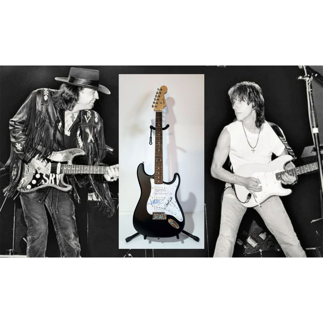 Stevie Ray, Vaughan Johnny, Winter Jeff Beck, Fender Stratocaster electric guitar signed with proof
