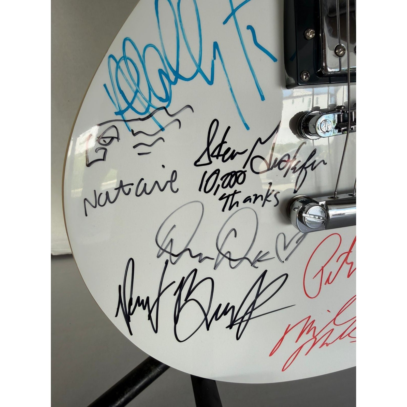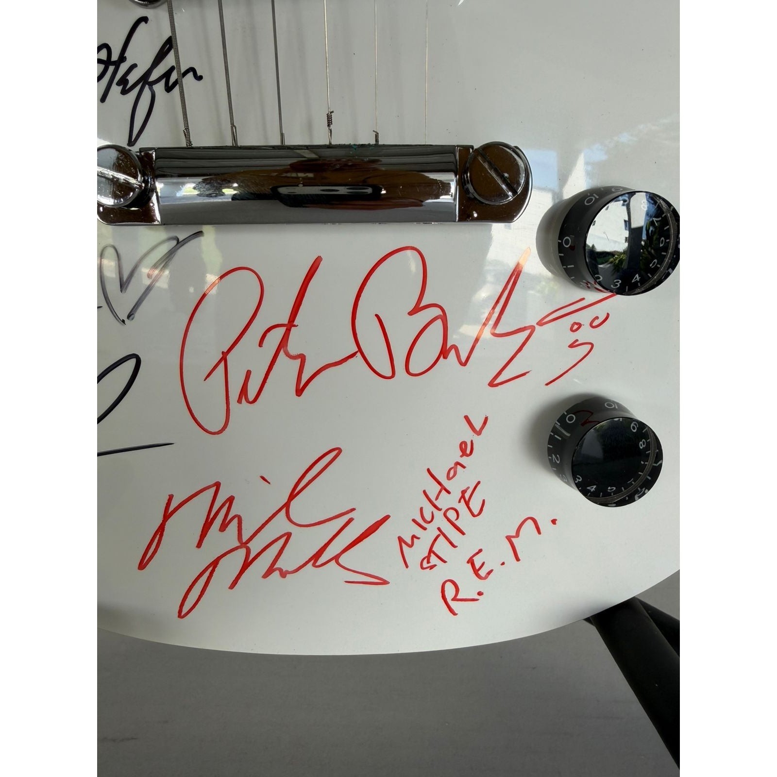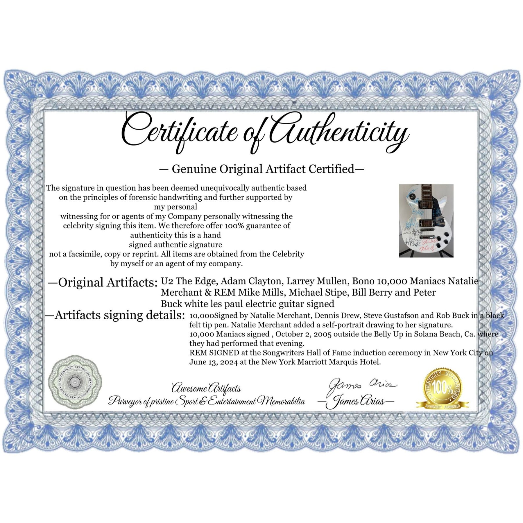 U2 The Edge, Adam Clayton, Larrey Mullen, Bono 10,000 Maniacs Natalie Merchant & REM Mike Mills, Michael Stipe, Bill Berry and Peter Buck white les paul electric guitar signed with proof $5,995