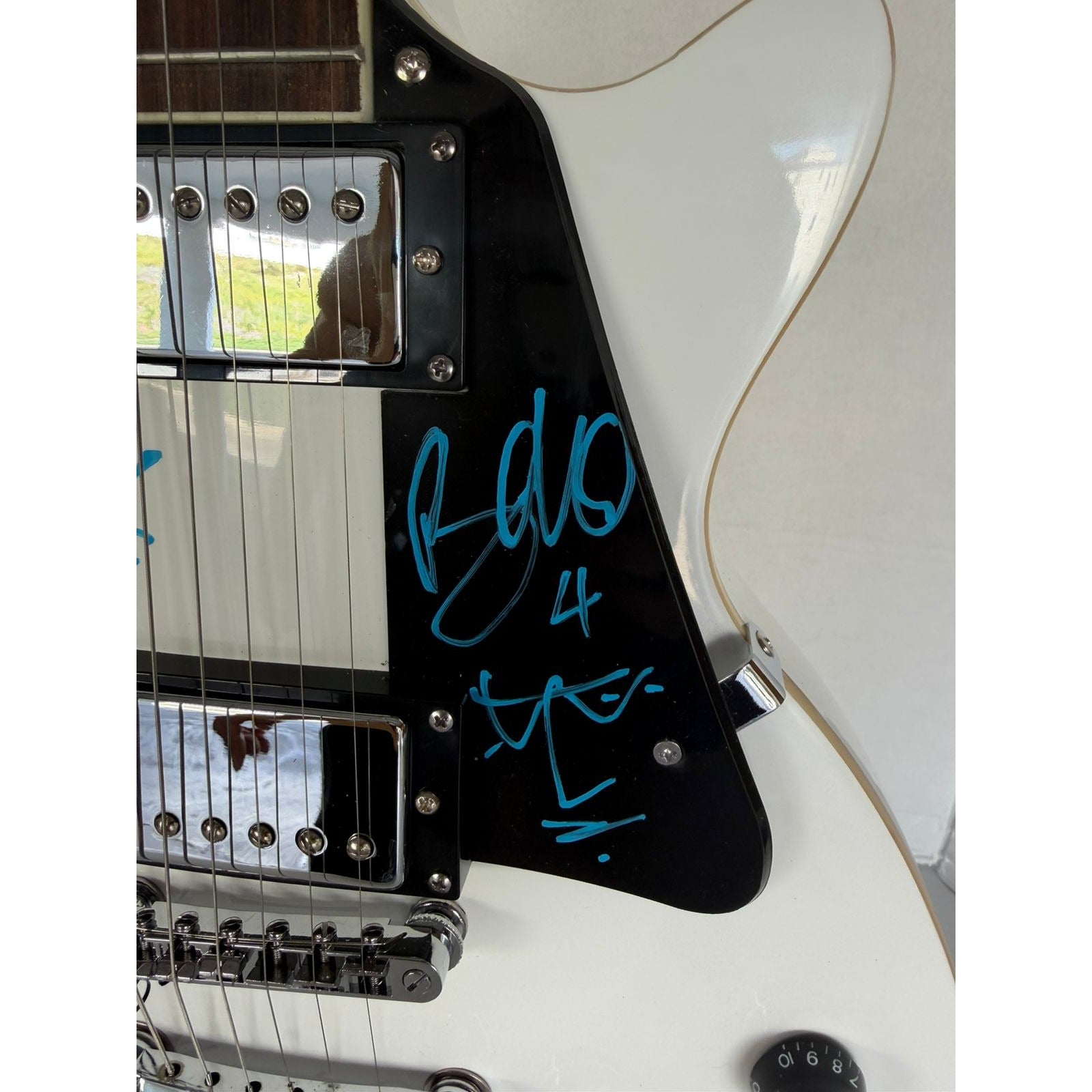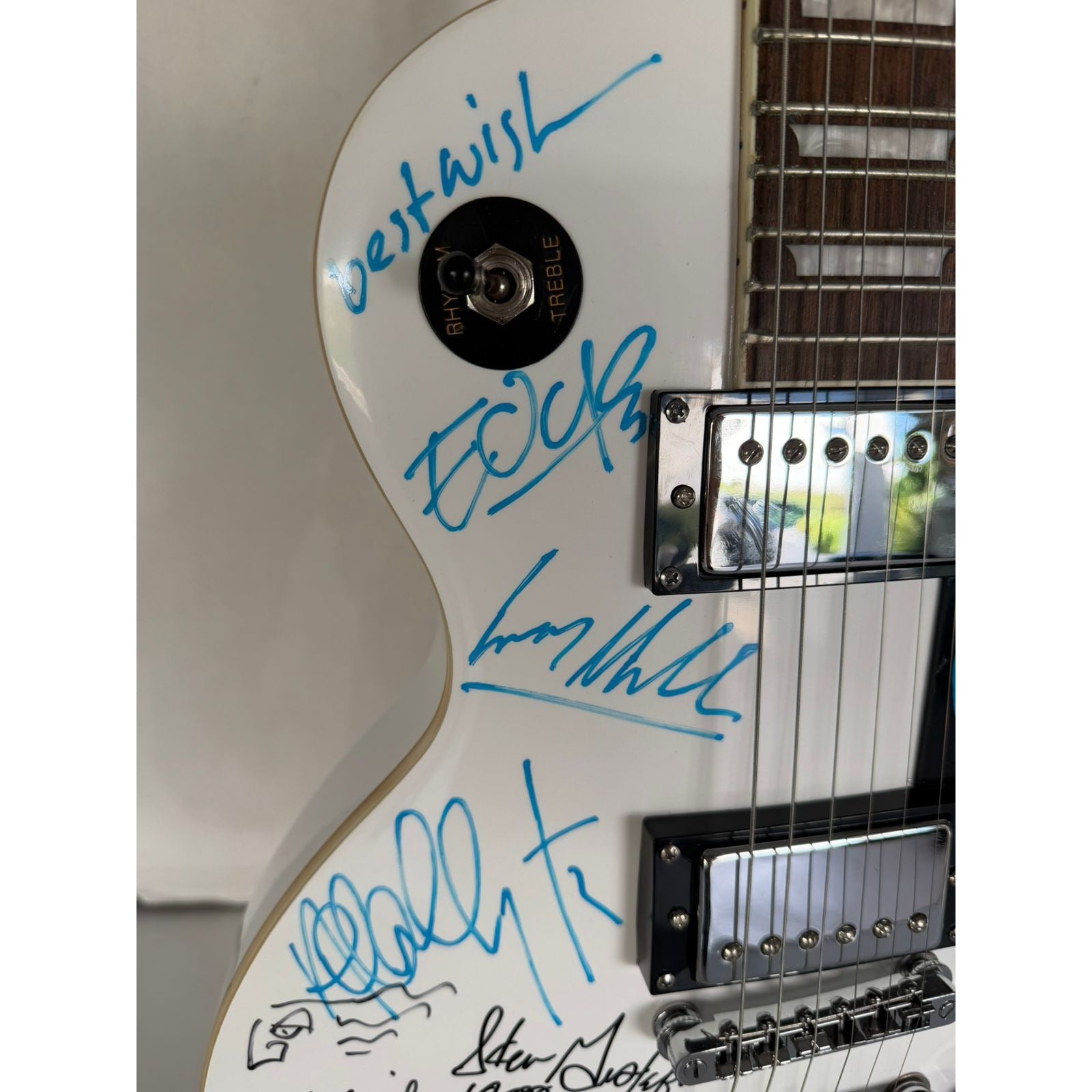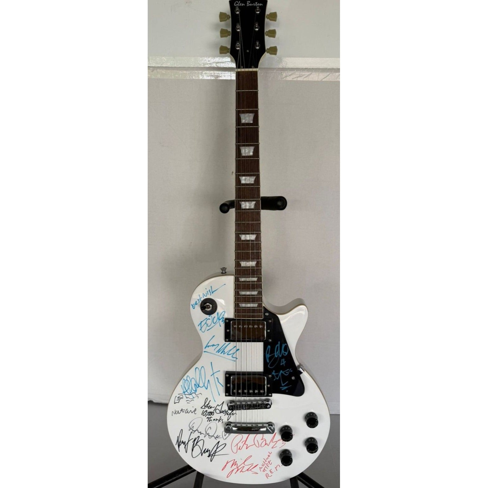 U2 The Edge, Adam Clayton, Larrey Mullen, Bono 10,000 Maniacs Natalie Merchant & REM Mike Mills, Michael Stipe, Bill Berry and Peter Buck white les paul electric guitar signed with proof $5,995