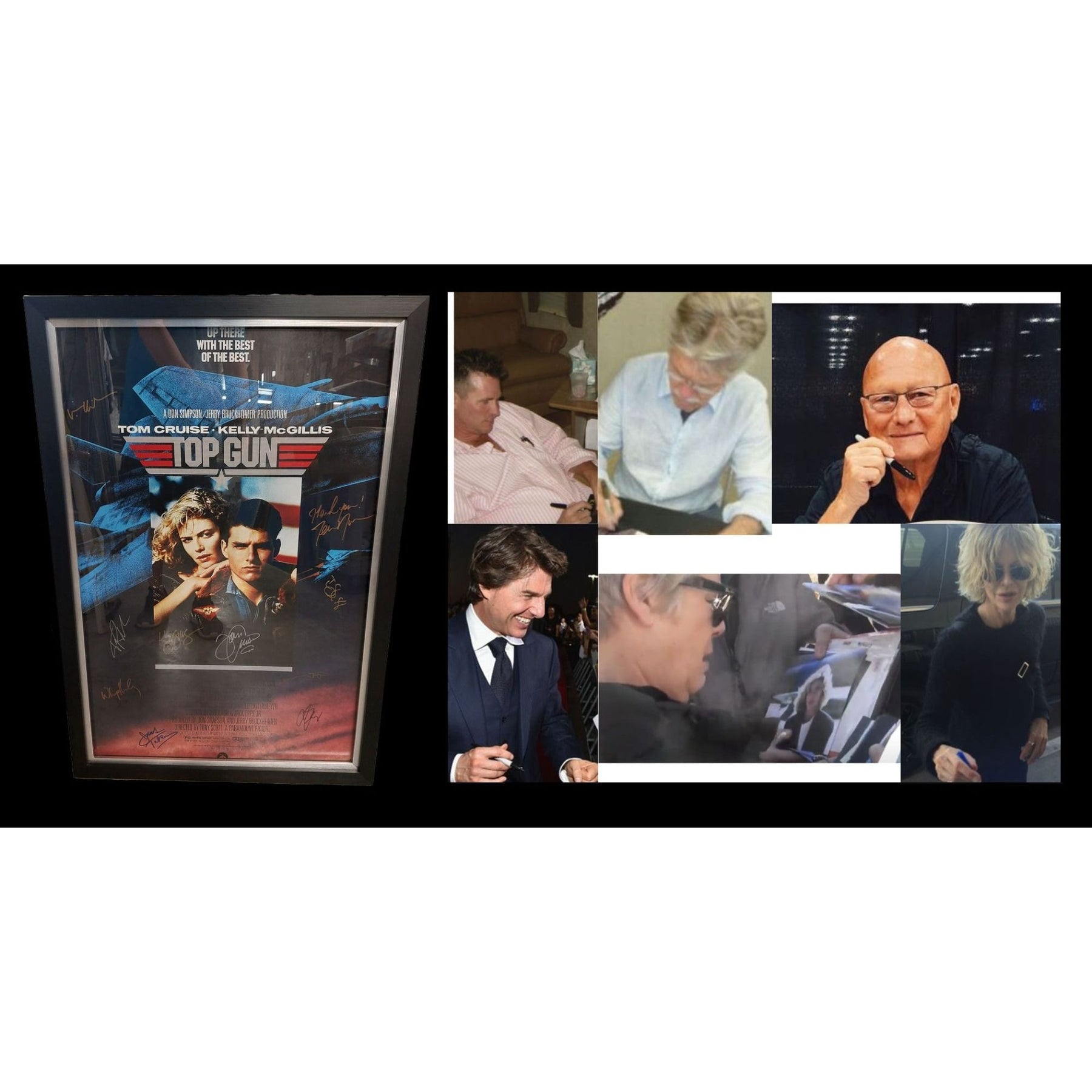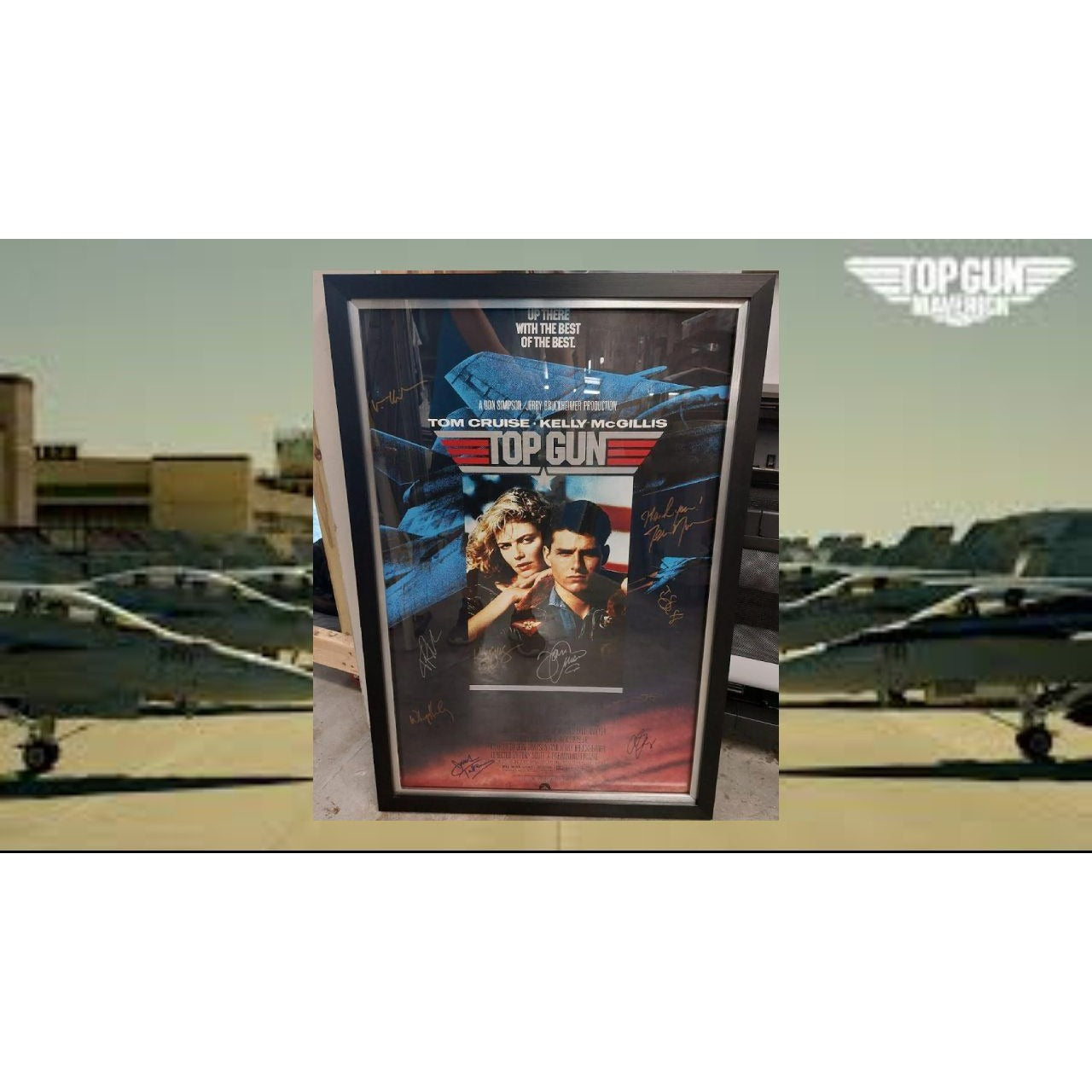Top Gun Tom Cruise Val Kilmer, Kelly McGillis, Terry Nunn, Kenny Loggins 34x26 original movie poster signed and framed 27x39 with proof $2995