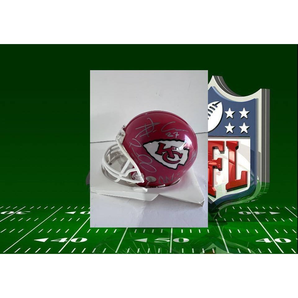 Kansas City Chiefs Patrick Mahomes Andy Reid, Travis Kelce, Tyreek Hill 2019-20 team game model jersey signed with proof