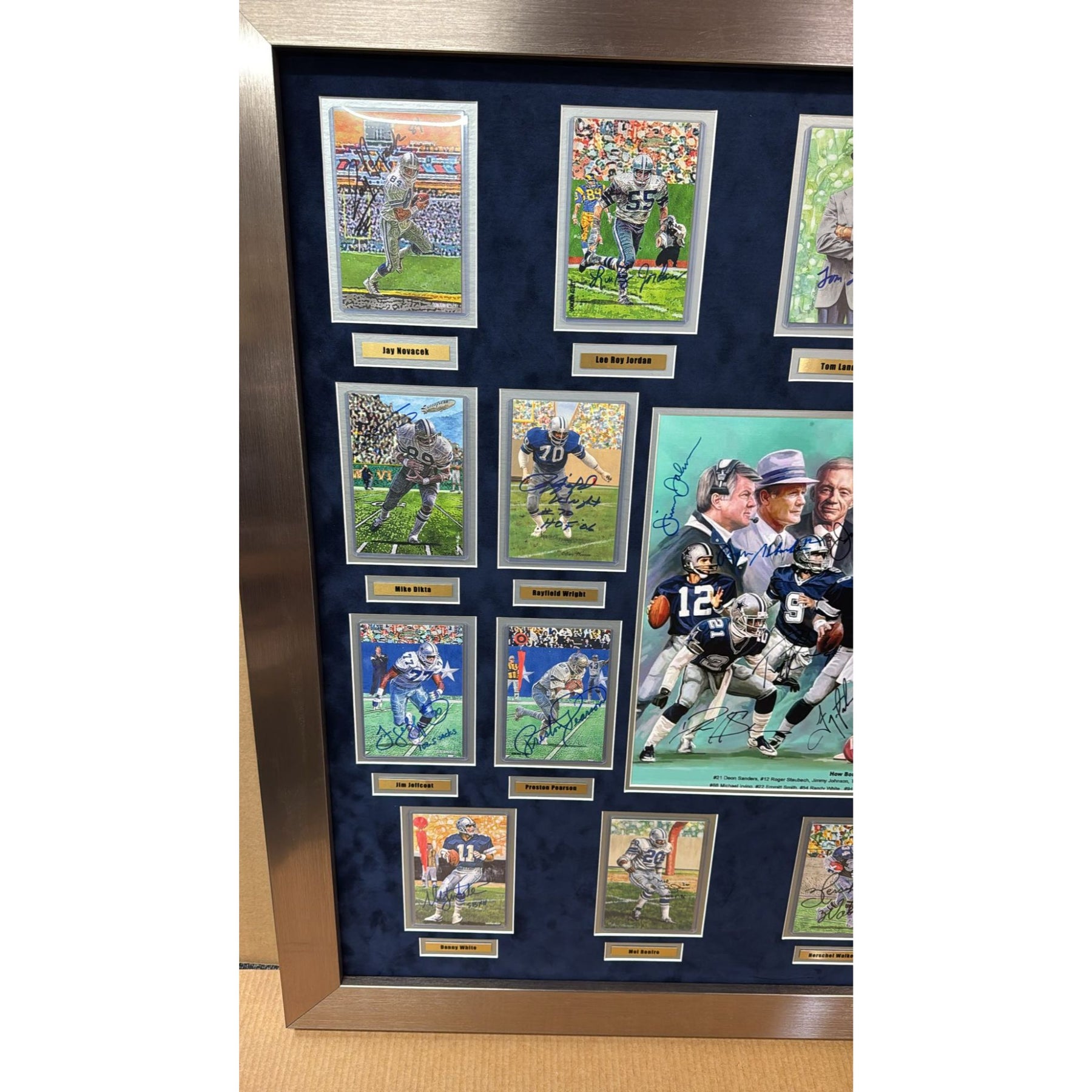As If this piece wasn't incredible with these 12 legends. I decided to complete my piece with these beautiful (19) signed Dallas Cowboy Hall of Fame 5x7 artists prints.