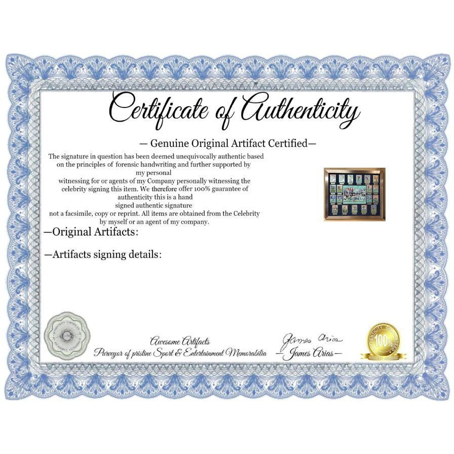 #2 you will receive a certificate of authenticity which will explain the date and location of where I obtained the signatures. Many companies offer an opinion of authenticity I am able to offer 100% guarantee of authenticity as I witness the item being signed personally and I support this claim with signing photos as well as the exact information of where the item was obtained I must say if you take a logical perspective you're getting much more from me than you would get from the so-called authentication companies that give nothing more than an opinion based on no scientific criteria whatsoever by the way
