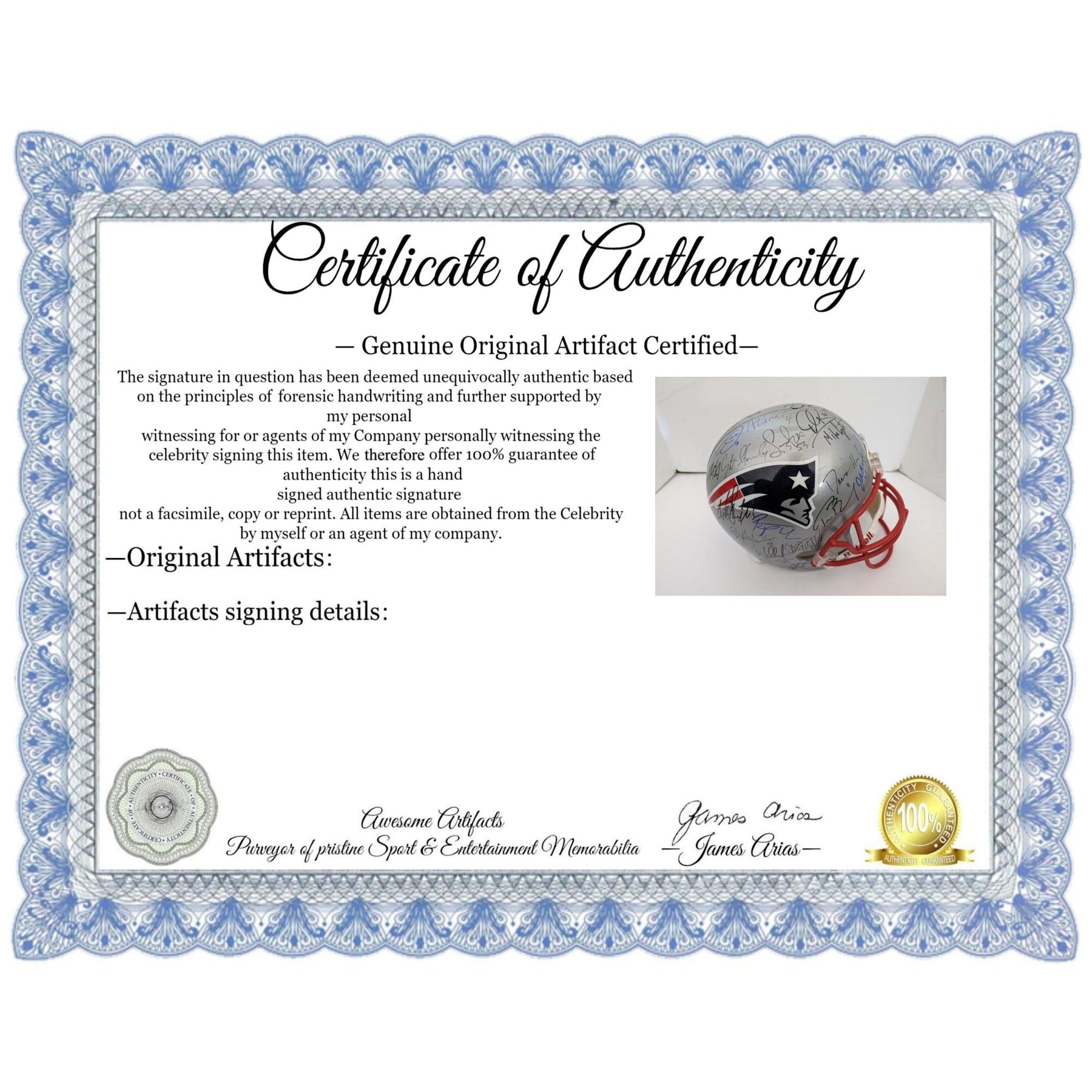 Signers include: Joe Andruzzi, Drew Bledsoe, Tom Brady, Troy Brown, Tedy Bruschi, Terrell Buckley, Je'Rod Cherry, Fred Coleman, Mike Compton, Bryan Cox, Marc Edwards, Kevin Faulk, Bobby Hamilton, Antwan Harris, Damon Huard, Larry Izzo, Charles Johnson, Ted Johnson, Tebucky Jones, Ty Law, Matt Light, Willie McGinest, Lawyer Milloy, Steve Neal, Patrick Pass, David Patten, Roman Phifer, Anthony Pleasant, J.R Redmond, Grey Ruegamer, Richard Seymour, Terrance Shaw, Antowain Smith, Otis Smith, Chris Sullivan, Adam Vinatieri, Mike Vrabel, Ken Walter, Jermaine Wiggins, Damien Woody