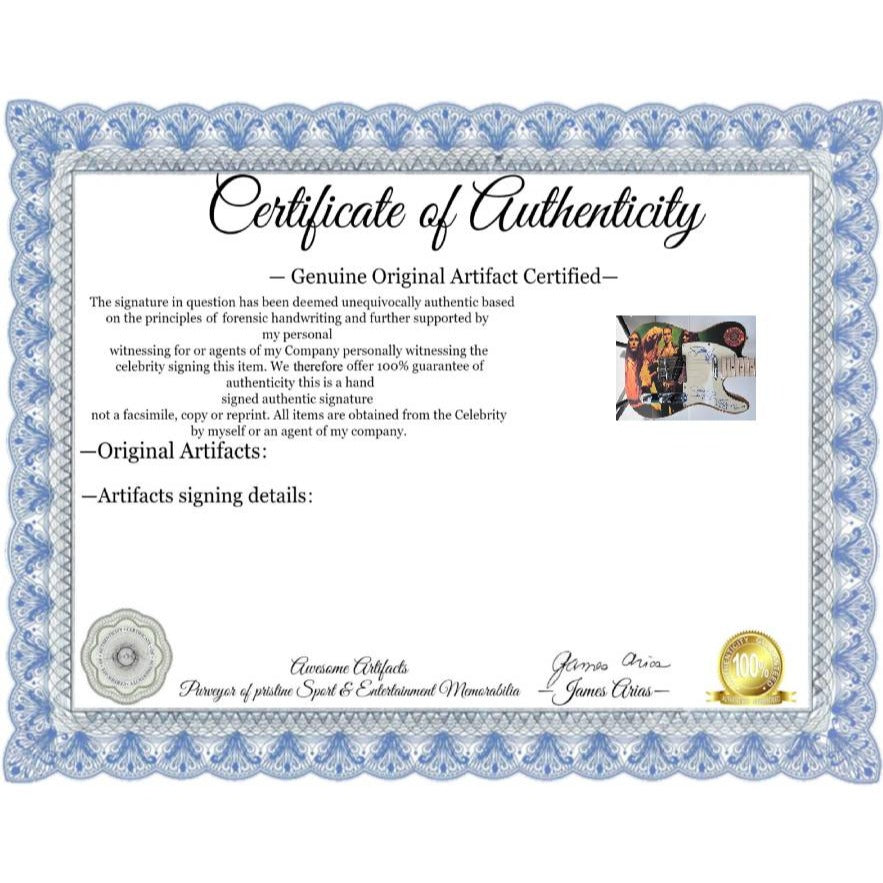 #2 you will receive a certificate of authenticity which will explain the date and location of where I obtained the signatures. Many companies offer an opinion of authenticity I am able to offer 100% guarantee of authenticity as I witness the item being signed personally and I support this claim with signing photos as well as the exact information of where the item was obtained I must say if you take a logical perspective you're getting much more from me than you would get from the so-called authentication companies that give nothing more than an opinion based on no scientific criteria whatsoever by the way