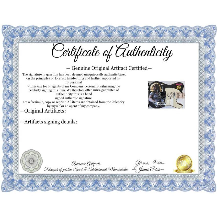 When I first started getting autographs in the world of entertainment and music I would always try and keep a couple guitars in my car , because day to day here in the Los Angeles / Hollywood area you just never could imagine who you might run into. My point being we may have been at Los Angeles International Airport waiting on Lennox Lewis to arrive on Virgin Atlantic from London and we would end up seeing U2 coming through the terminal. I eventually came to the conclusion I would always have a lot of pickguards on hand which I could have in my backpack eliminating the situation of not having anything for music figures to sign when I end up coming across them.