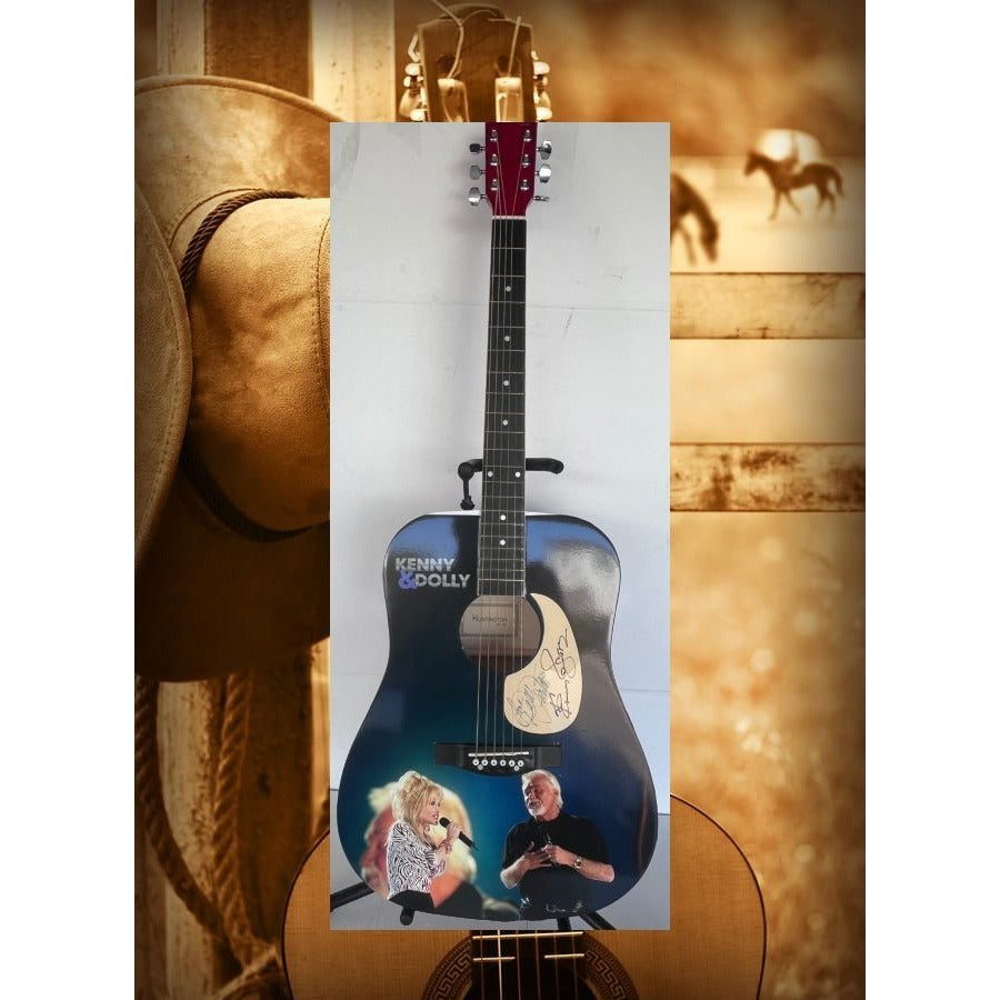 Dolly Parton and Kenny Rogers full size acoustic guitar signed with proof