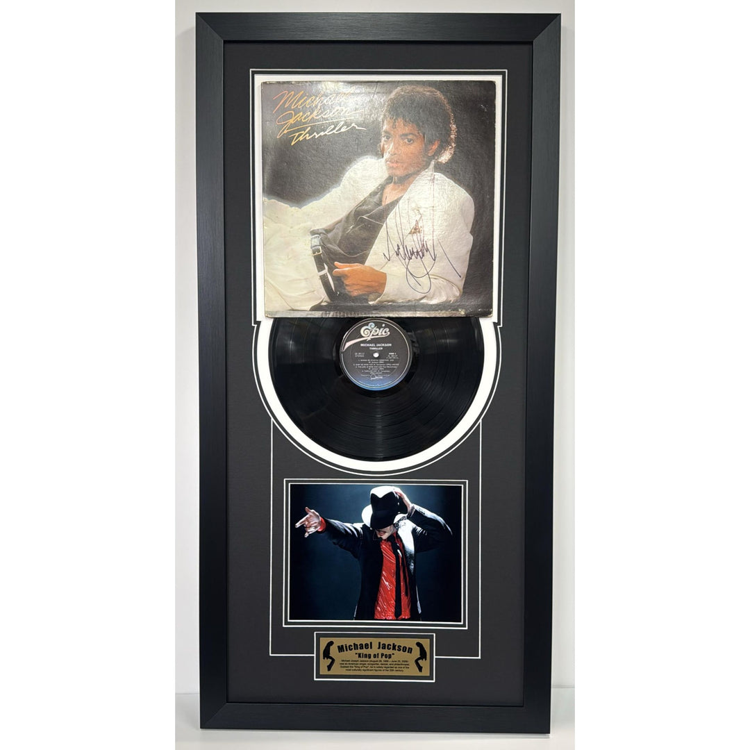 Michael Jackson "Thriller" lp signed with proof and museum quality frame with plexi 18x34 2995