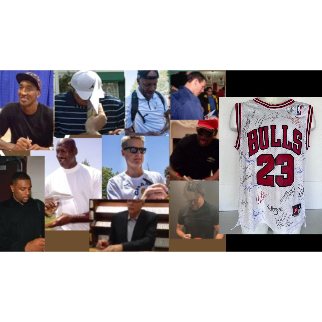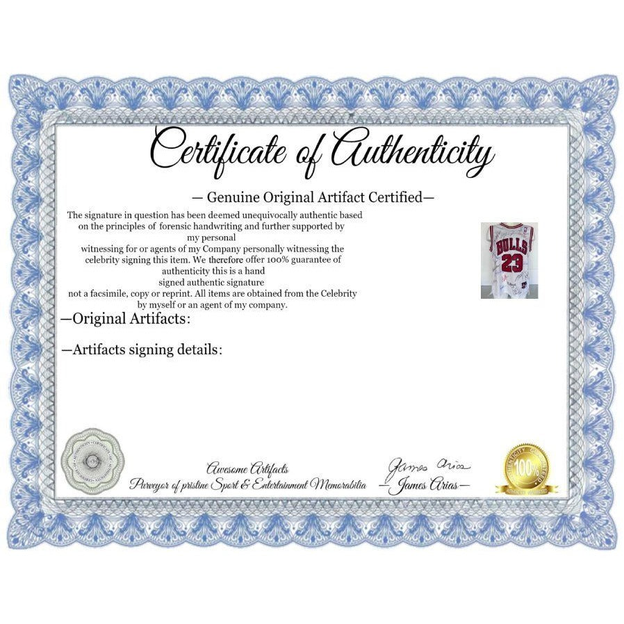 This was the first team in NBA history to win 70 regular season games and are widely considered one of if not (in opinion the greatest) team in NBA history. Jerry Krause the GM has passed away and I believe to be able to get the additional 17 members of this legendary squad in 2025 would be essentially impossible. So to be quite candid the offering price is tremendously reasonable taking into consideration #1 who signed it (a Jordan single signed jersey is basically worth what I am asking for this jersey with 18 signatures. #2 You will be receiving a jersey which myself and my wife and kids personally got the signatures on and these facts are supported by the exact dates & locations where the signatures were obtained.