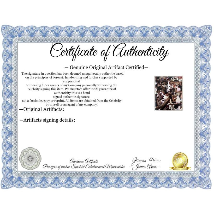 #3 All items which I sell come with a Certificate of Authenticity and with your certificate I will provide specific details, the date and location of where I obtained the signature(s). The nice thing here is I do not offer an opinion of authenticity rather you receive a guarantee of authenticity which I am able to offer as I have witnessed the items which I am offering actually being signed by the sports figure or celebrity.