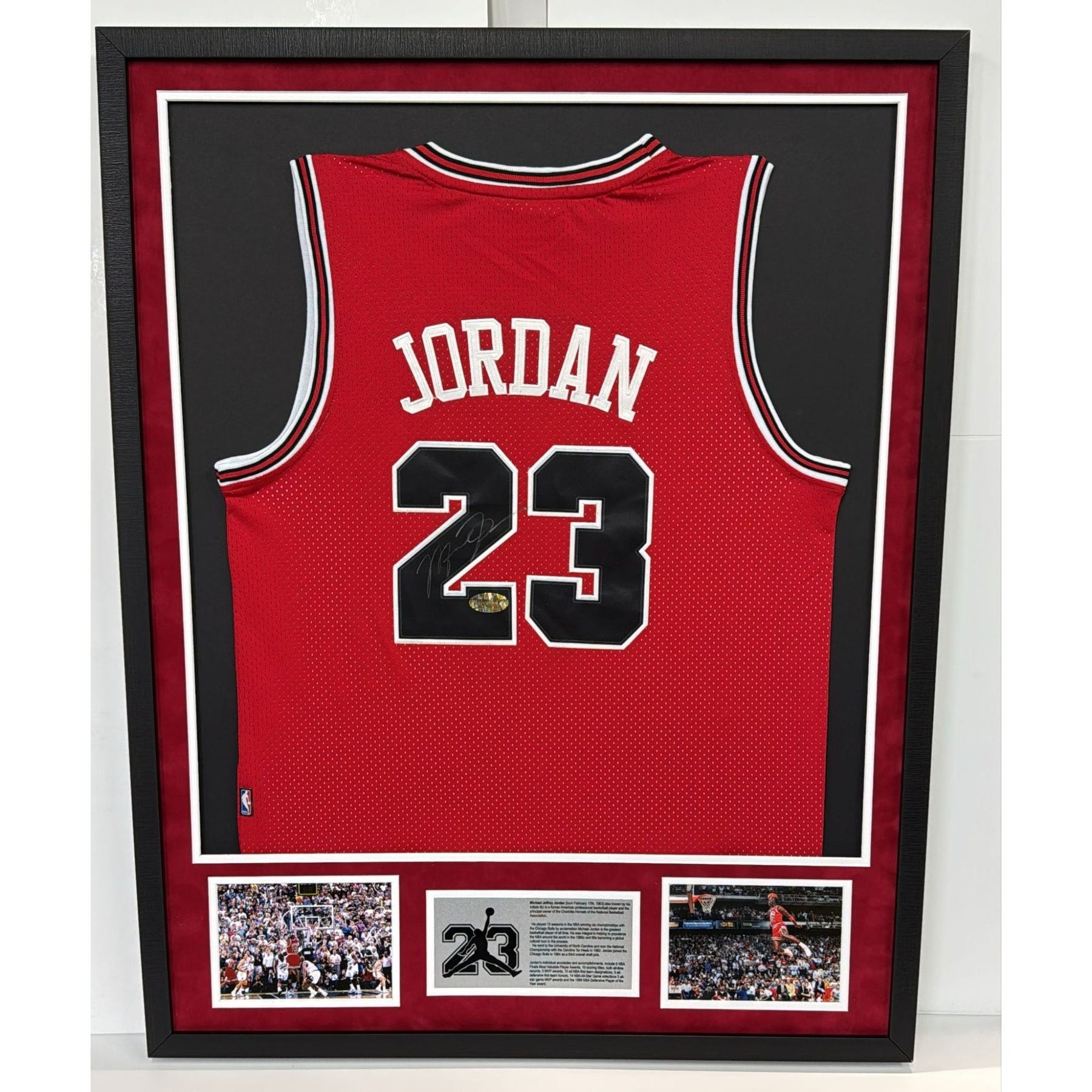 Michael Jordan Chicago Bulls game model jersey size xl signed with museum quality frame signed with proof