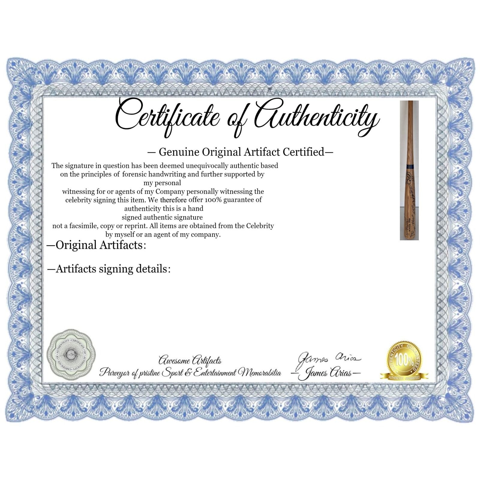 #3 All items which I sell come with a Certificate of Authenticity and with your certificate I will provide specific details, the date and location of where I obtained the signature(s). The nice thing here is I do not offer an opinion of authenticity rather you receive a guarantee of authenticity which I am able to offer as I have witnessed the items which I am offering actually being signed by the sports figure or celebrity.