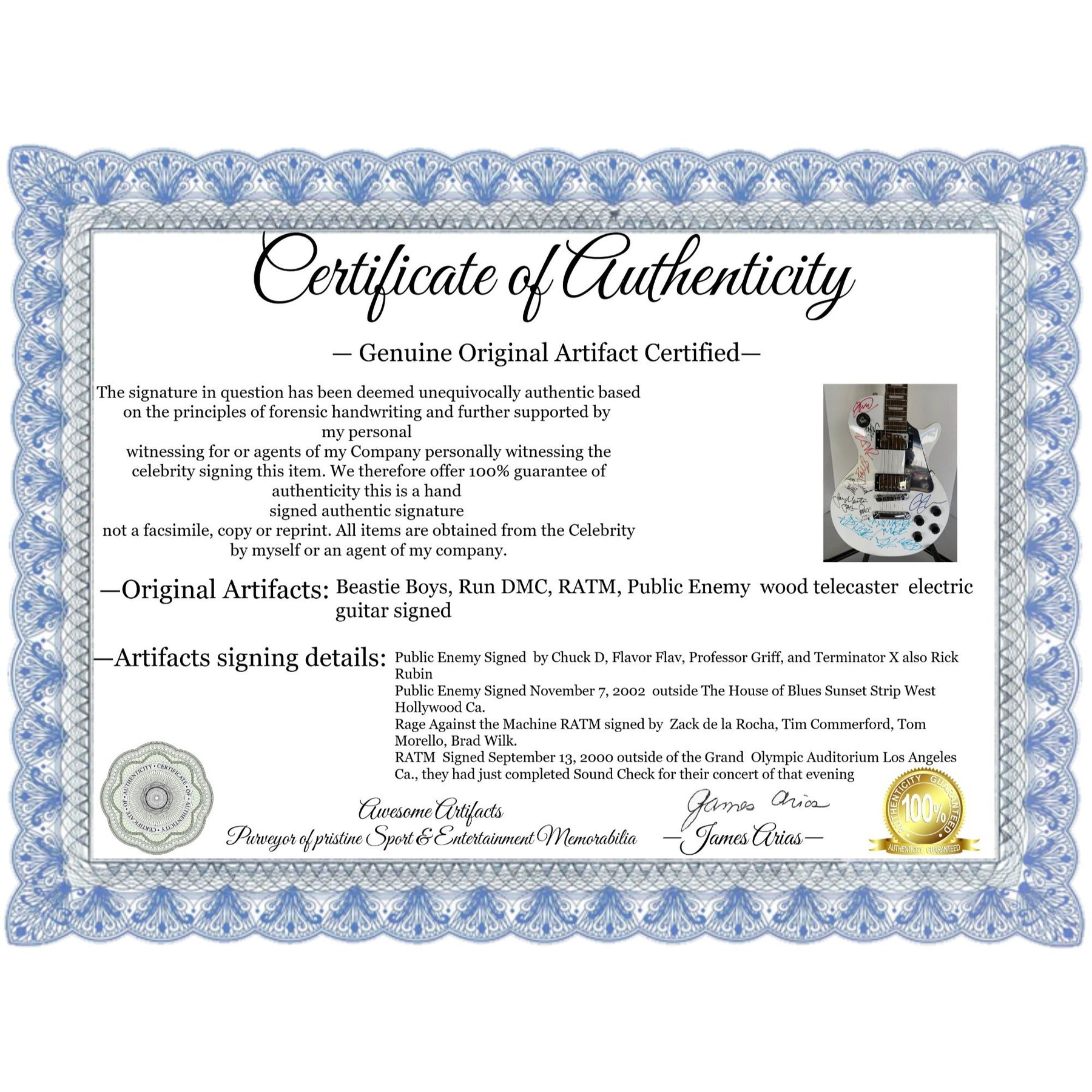 Beastie Boys, Run DMC, RATM, Public Enemy white kes paul electric guitar signed with proof $5,995