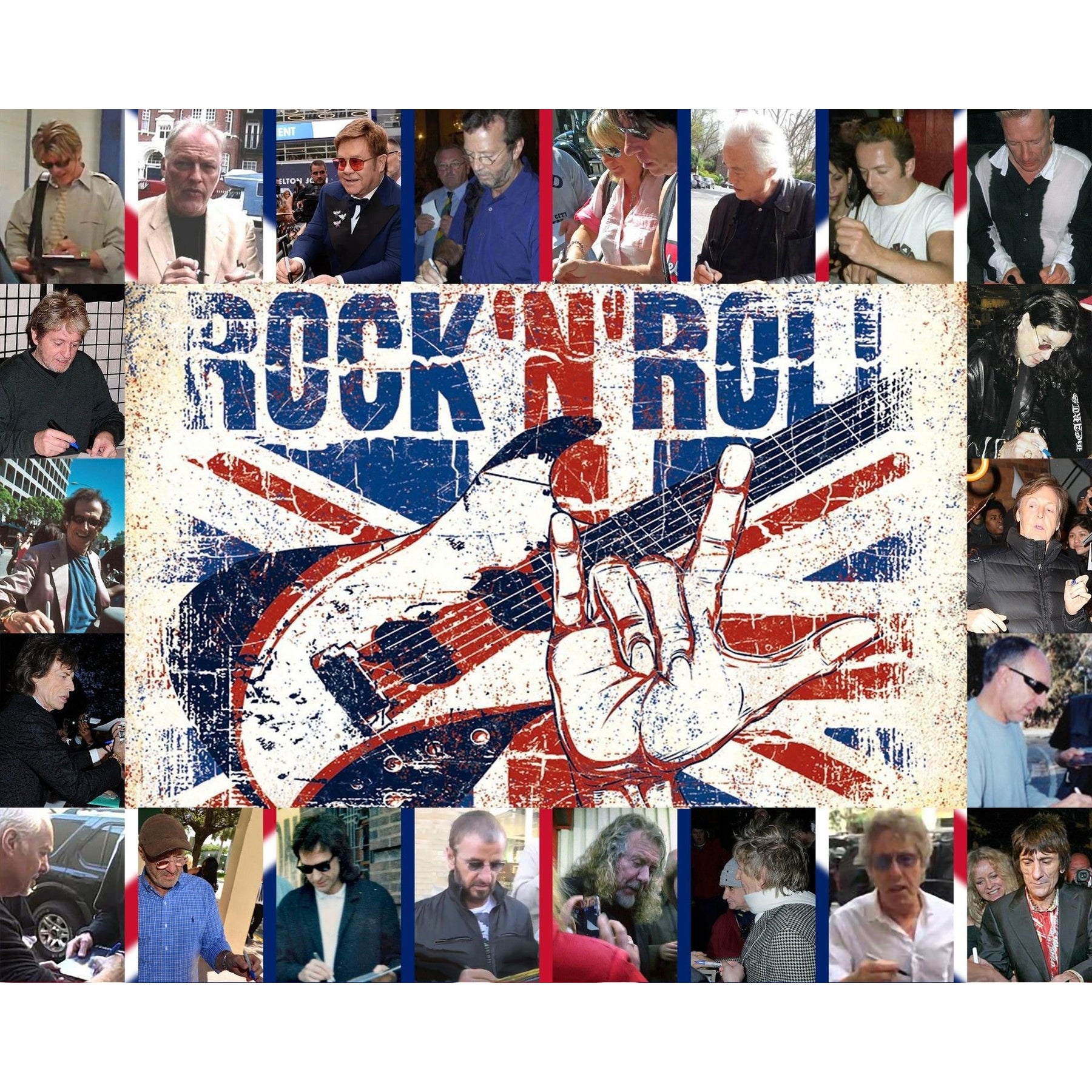 British Rock n Roll Led Zeppelin The Beatles Pink Floyd The Stones British flag electric guitar signed with proof & museum quality frame