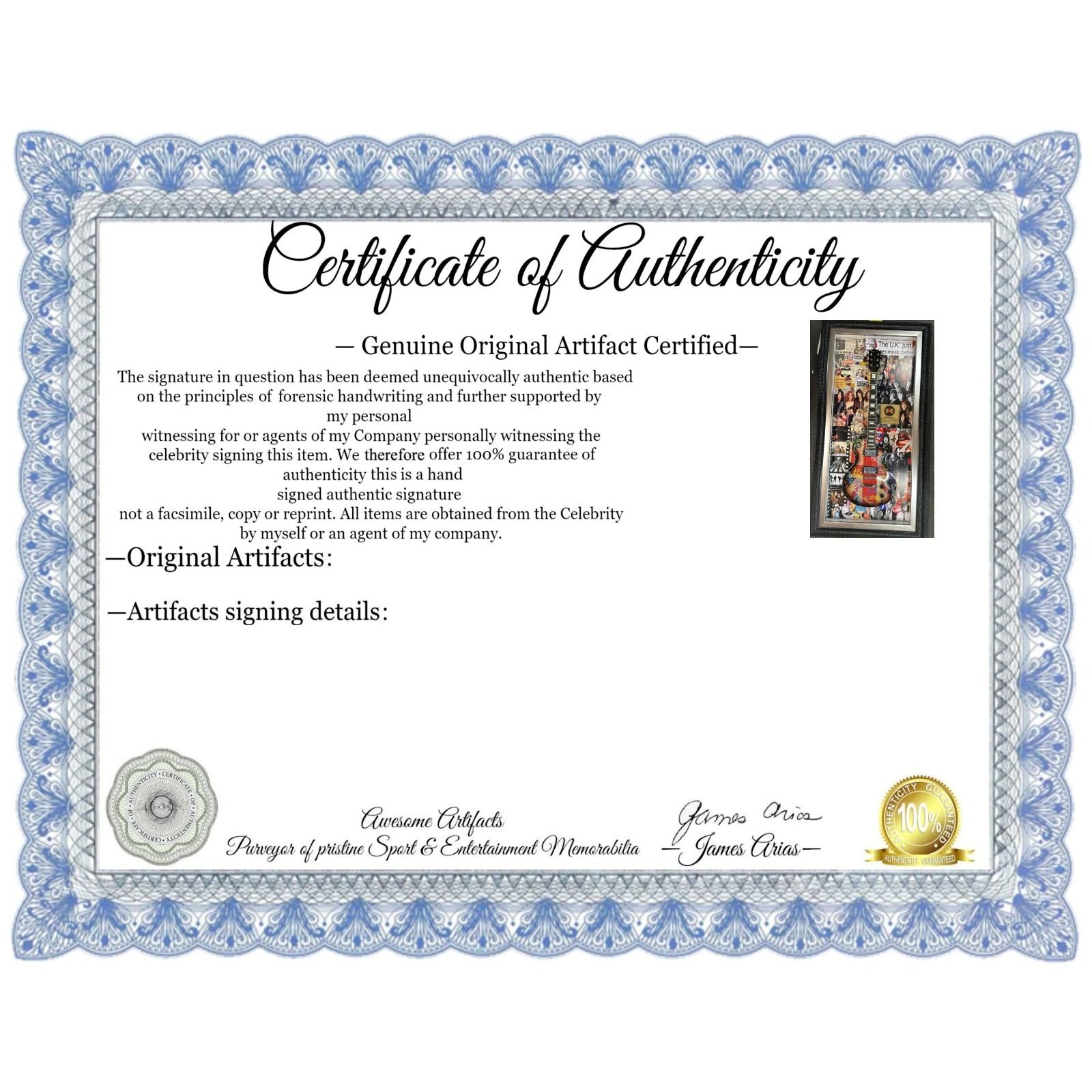 #2 you will receive a certificate of authenticity which will explain the date and location of where I obtained the signatures. Many companies offer an opinion of authenticity I am able to offer 100% guarantee of authenticity as I witness the item being signed personally and I support this claim with signing photos as well as the exact information of where the item was obtained I must say if you take a logical perspective you're getting much more from me than you would get from the so-called authentication companies that give nothing more than an opinion based on no scientific criteria whatsoever by the way